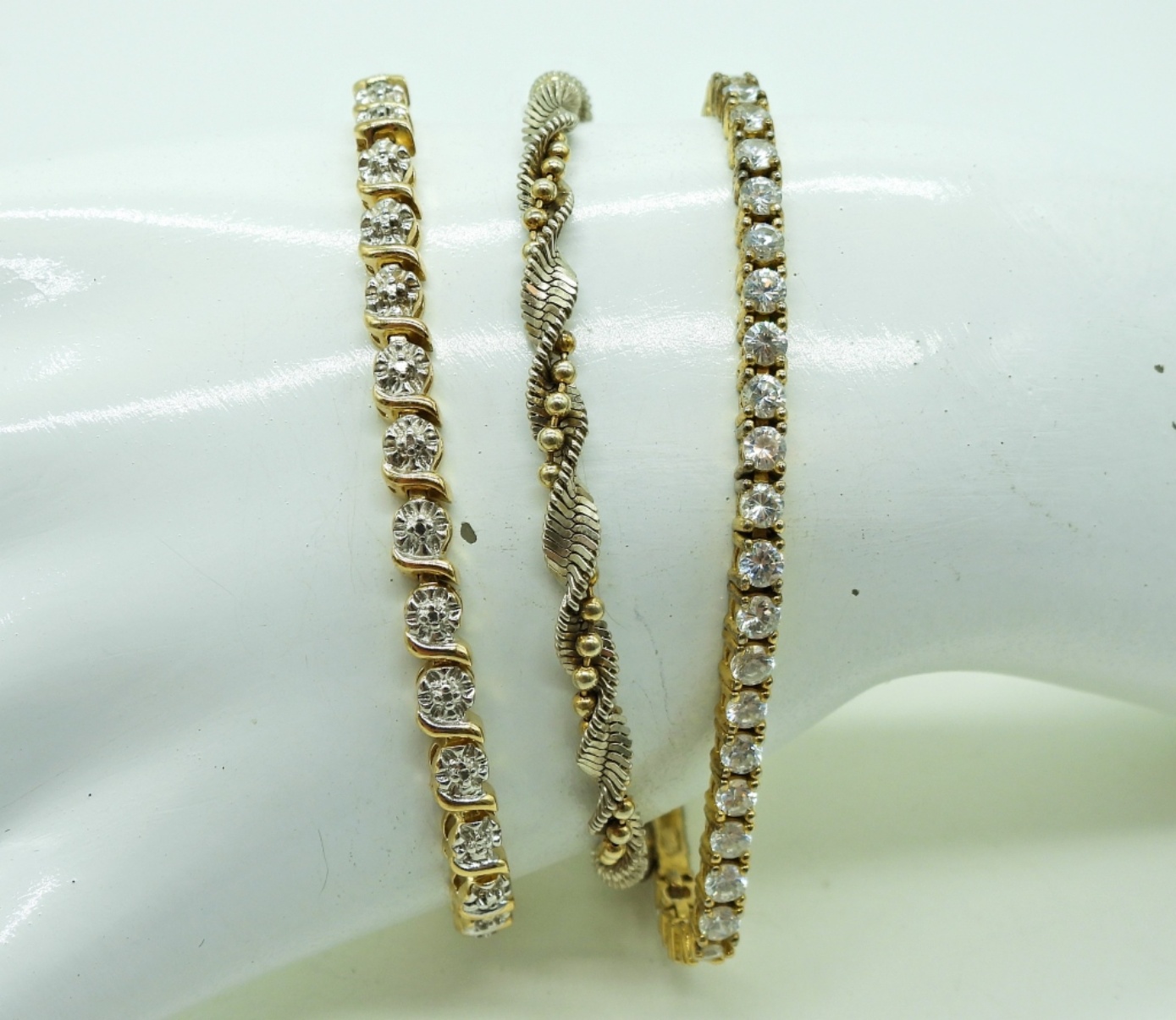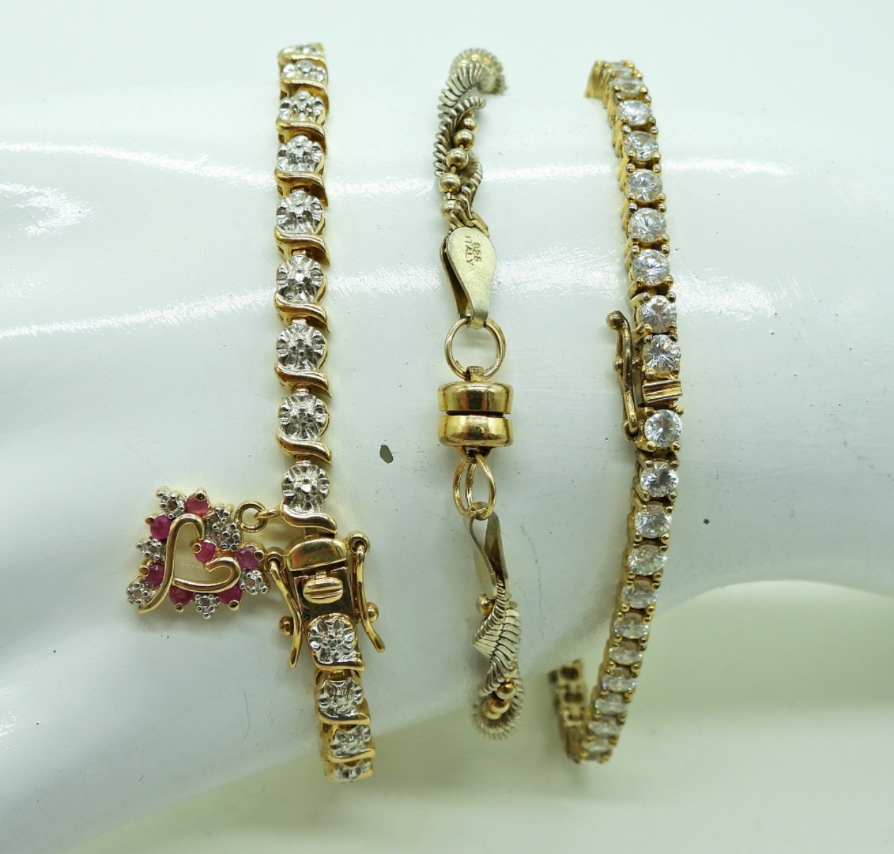 Three Gold Tone, Sterling Bracelets, all 7″. All marked 925. 18 DWT