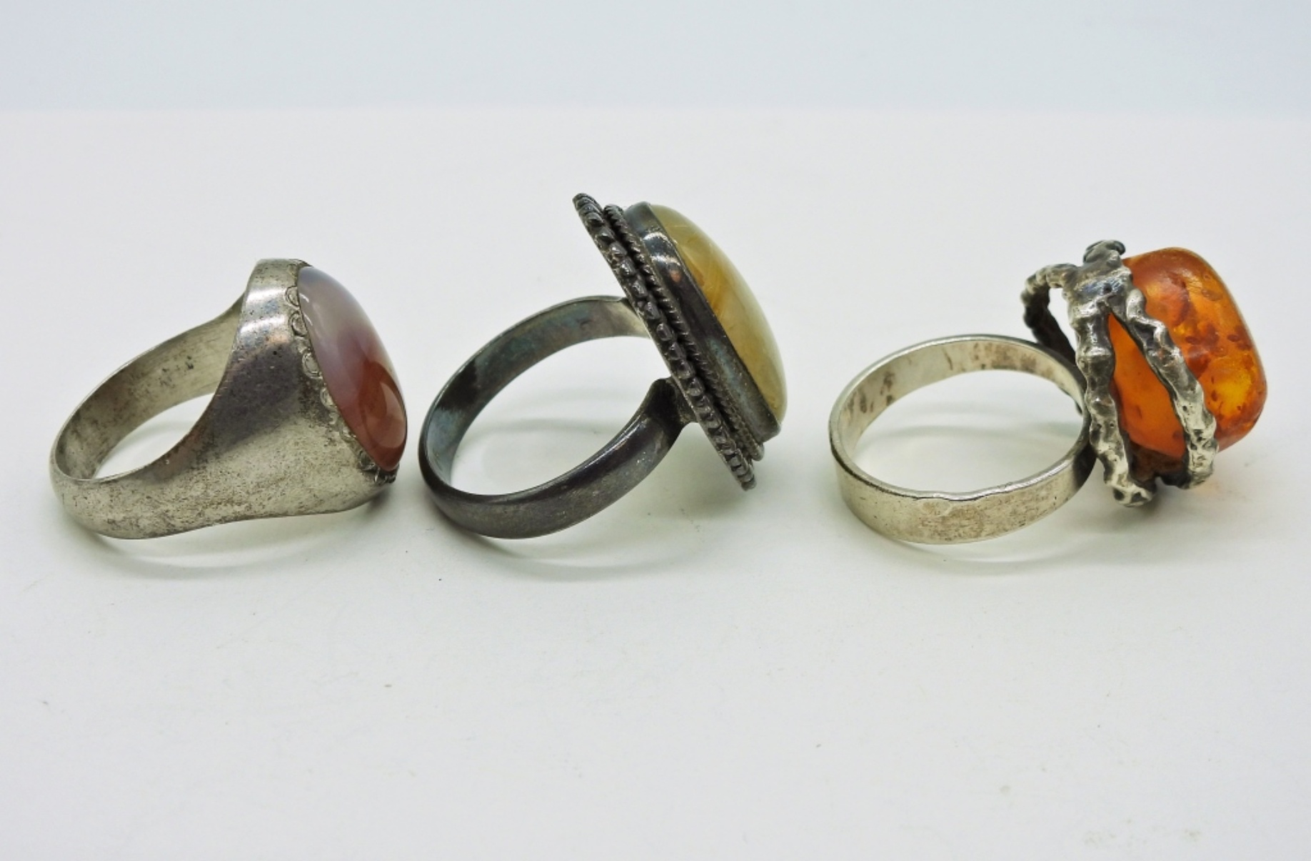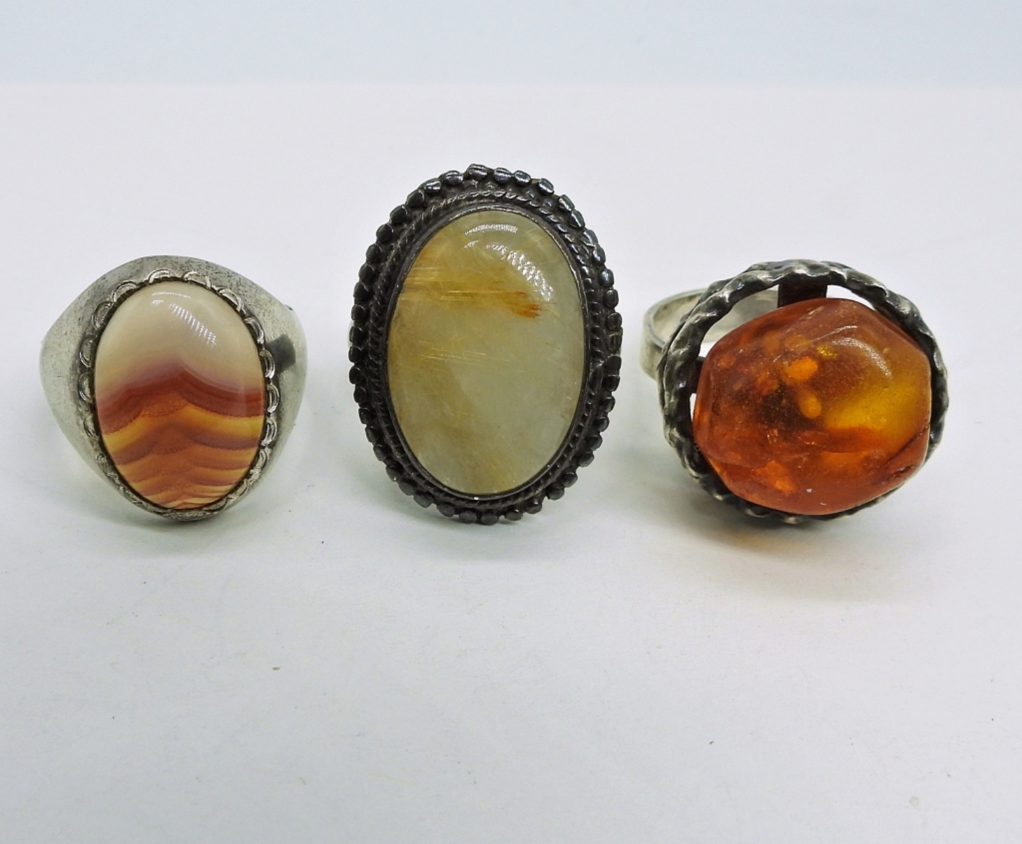 Three Sterling Rings with Gemstones, Sizes 9, 10, 11. Marked 925. 18.9 DWT