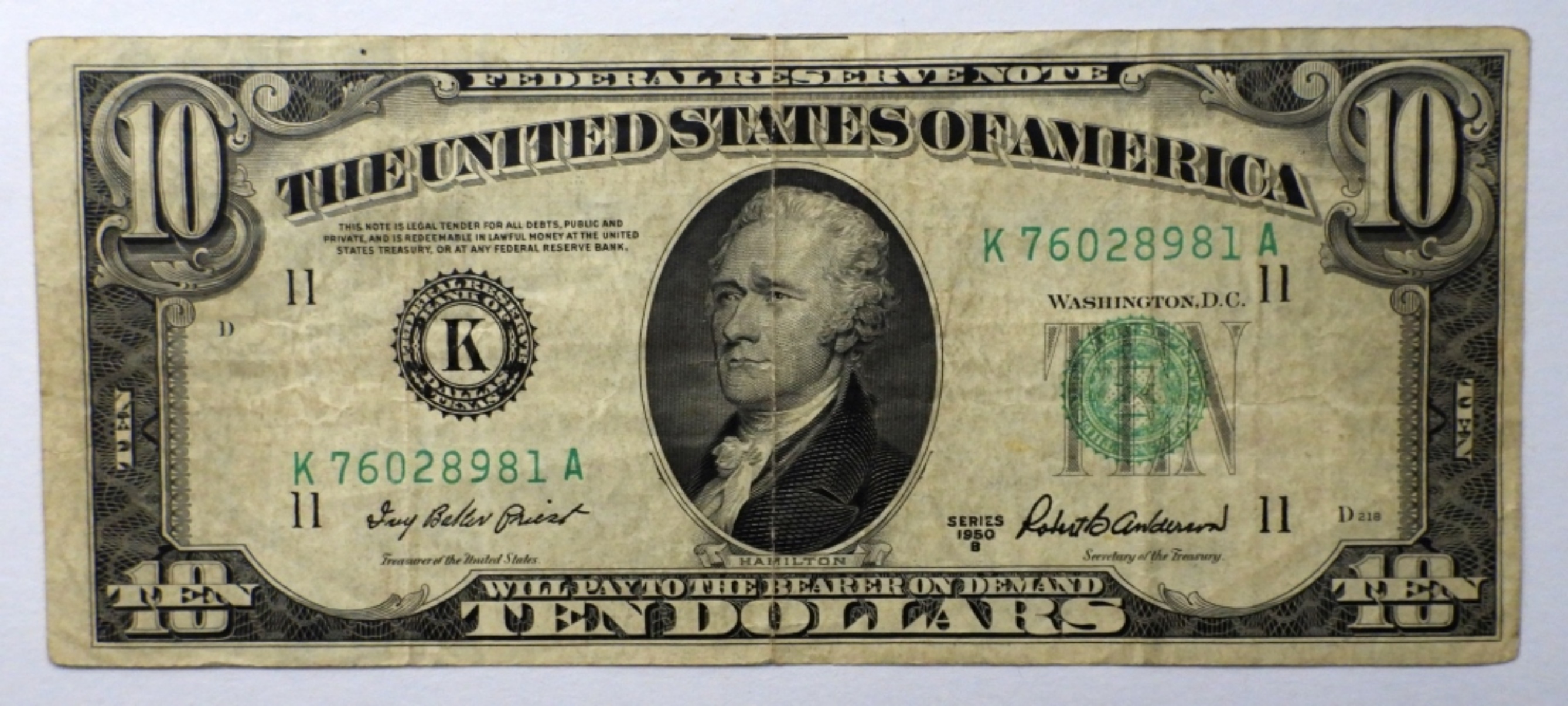 TEN DOLLARS, PRINTING ON THE BACK IS CUT OFF, SEE PHOTOS