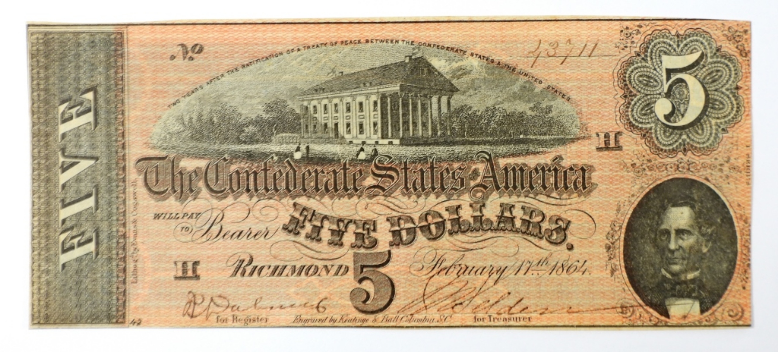 FIVE DOLLARS, RICHMOND, VA, FEBRUARY 17TH 1864