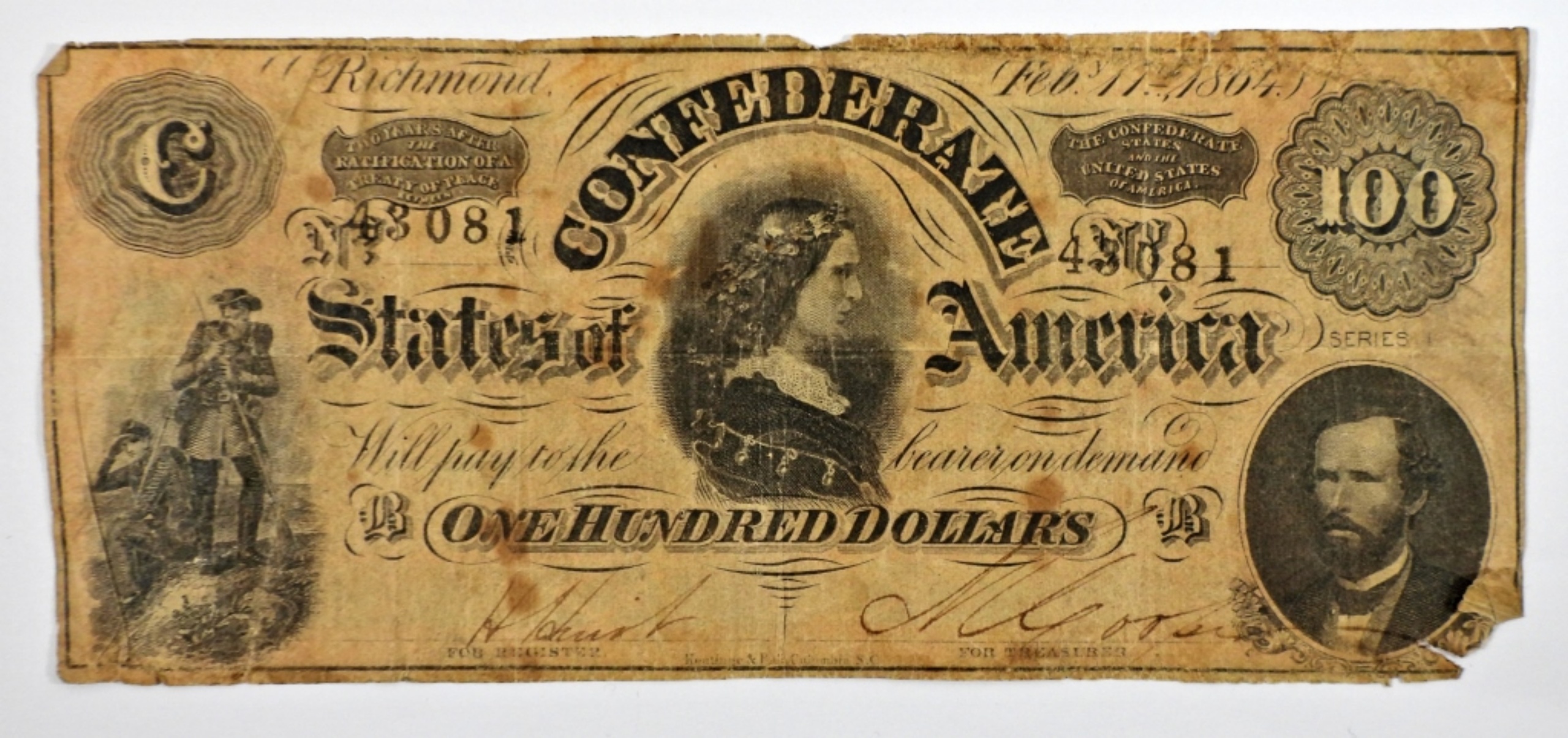 ONE HUNDRED DOLLARS, RICHMOND, VA, FEBRUARY 17TH 1864