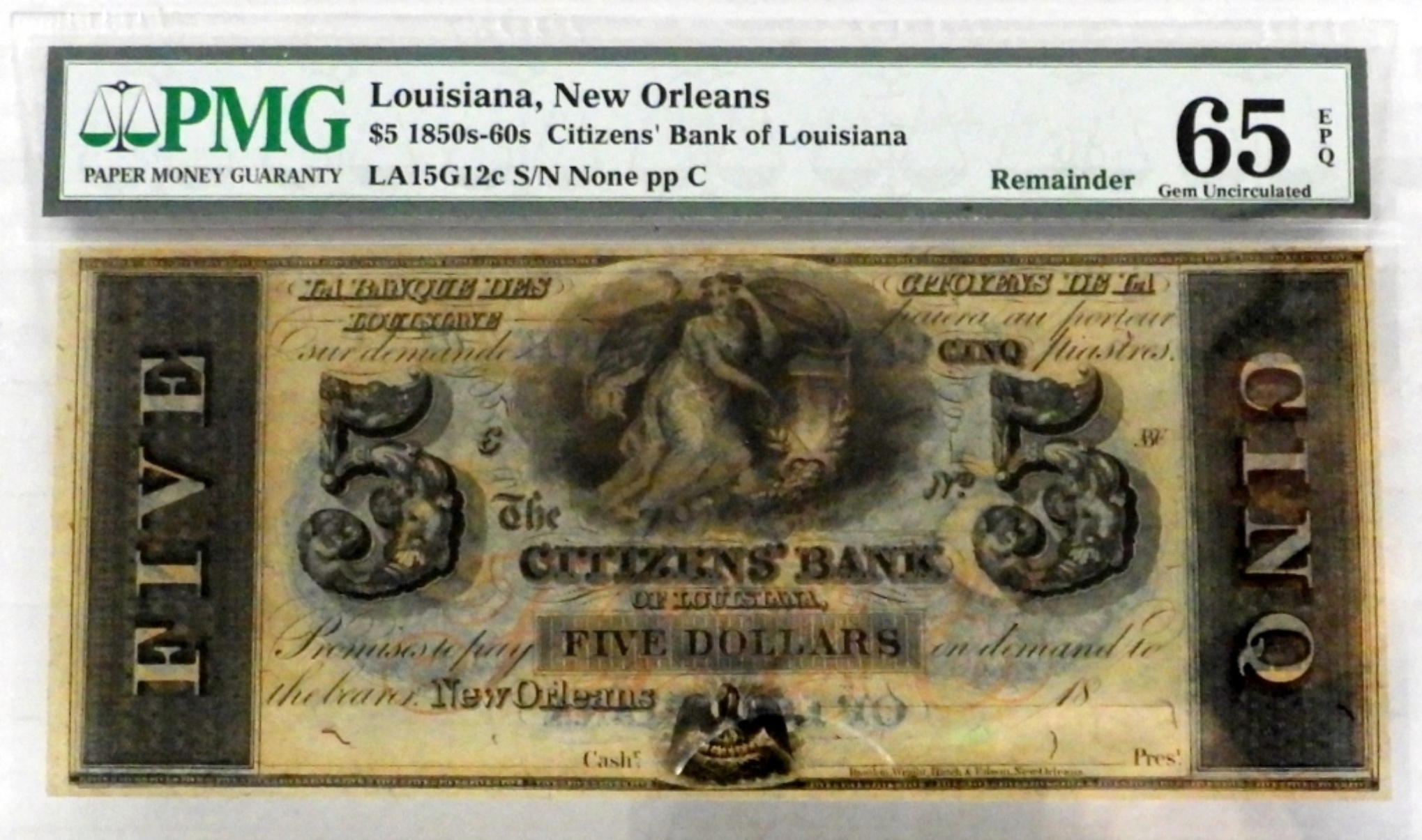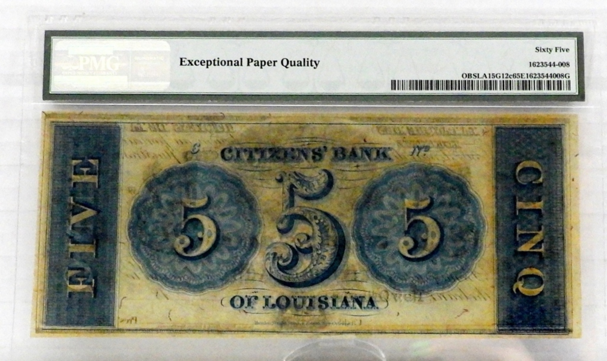 1850s-60s CITIZENS BANK of LOUISIANA – FIVE DOLLARS