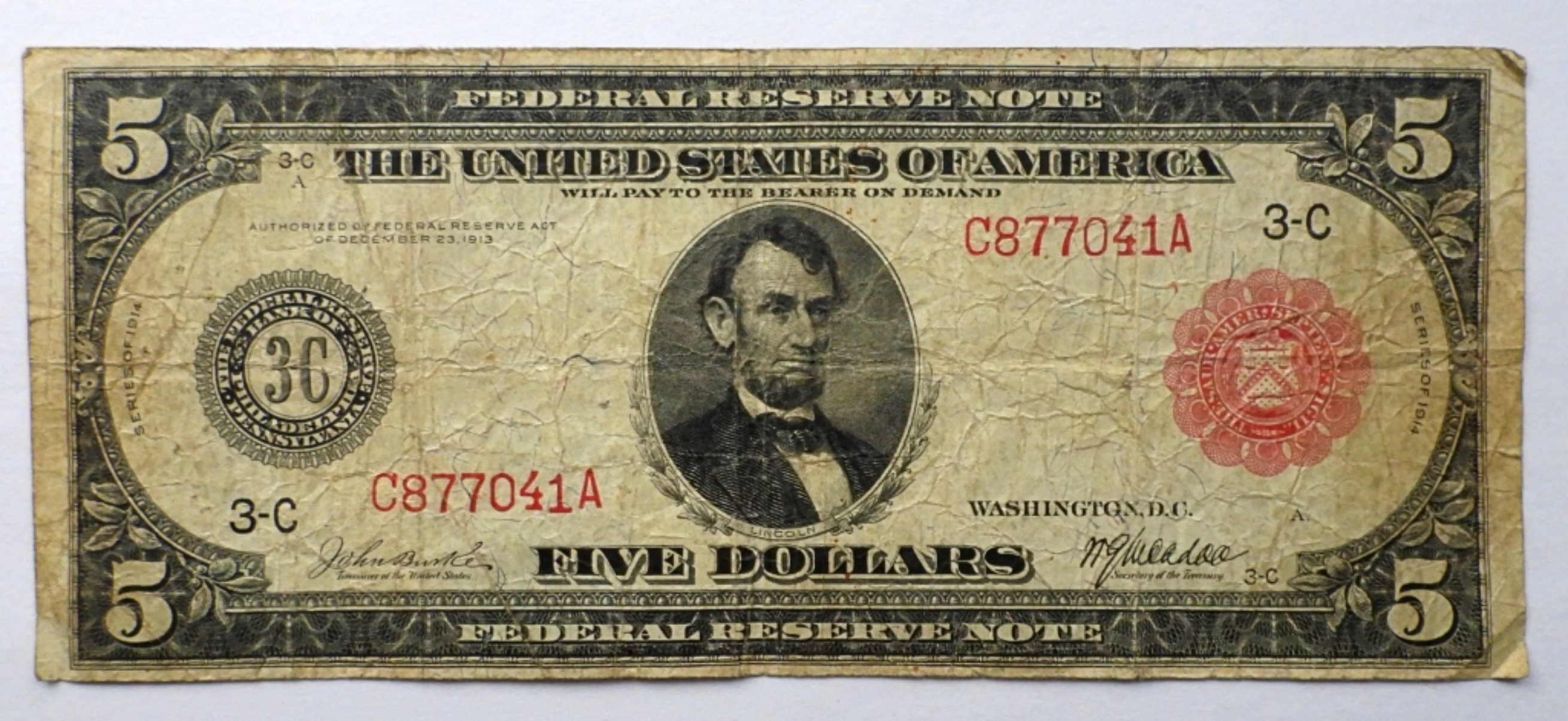 FIVE DOLLARS, LARGE SIZE NOTE