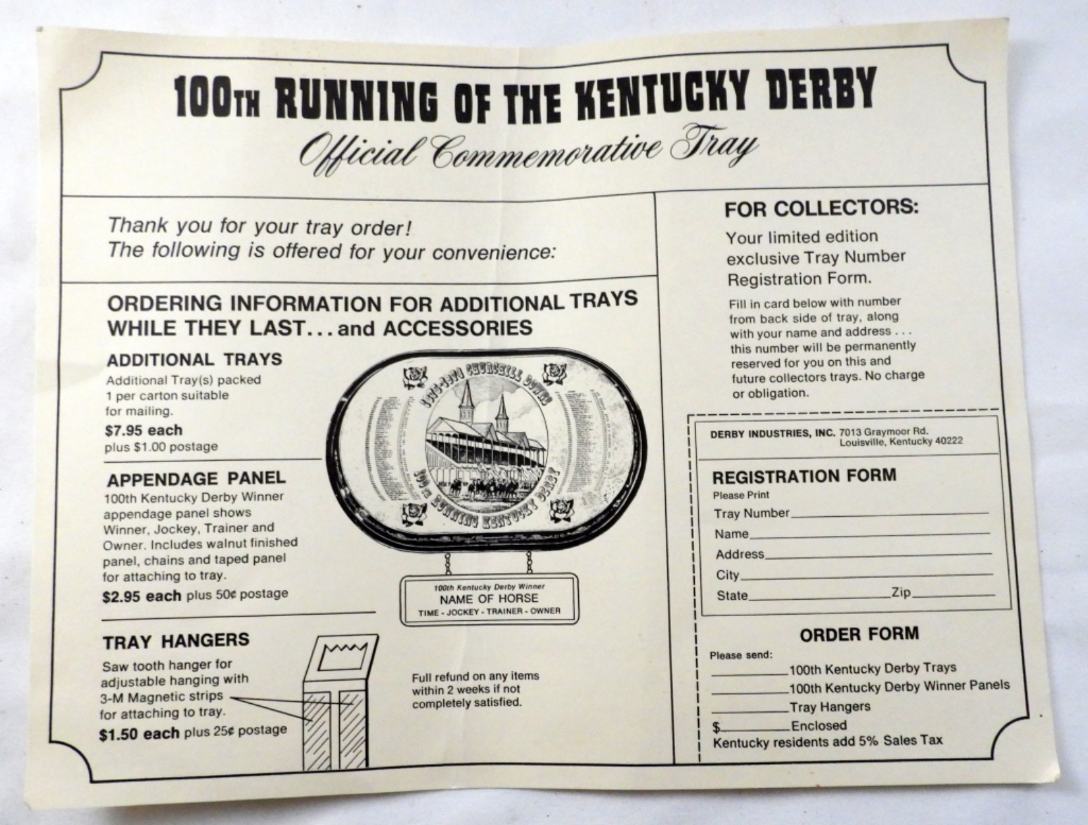 SERVING TRAY – LIKE NEW in BOX – 100th CHRUCHILLS DOWN RUNNING of the KENTUCKY DERBY – 21 x 13 x 1 1/4