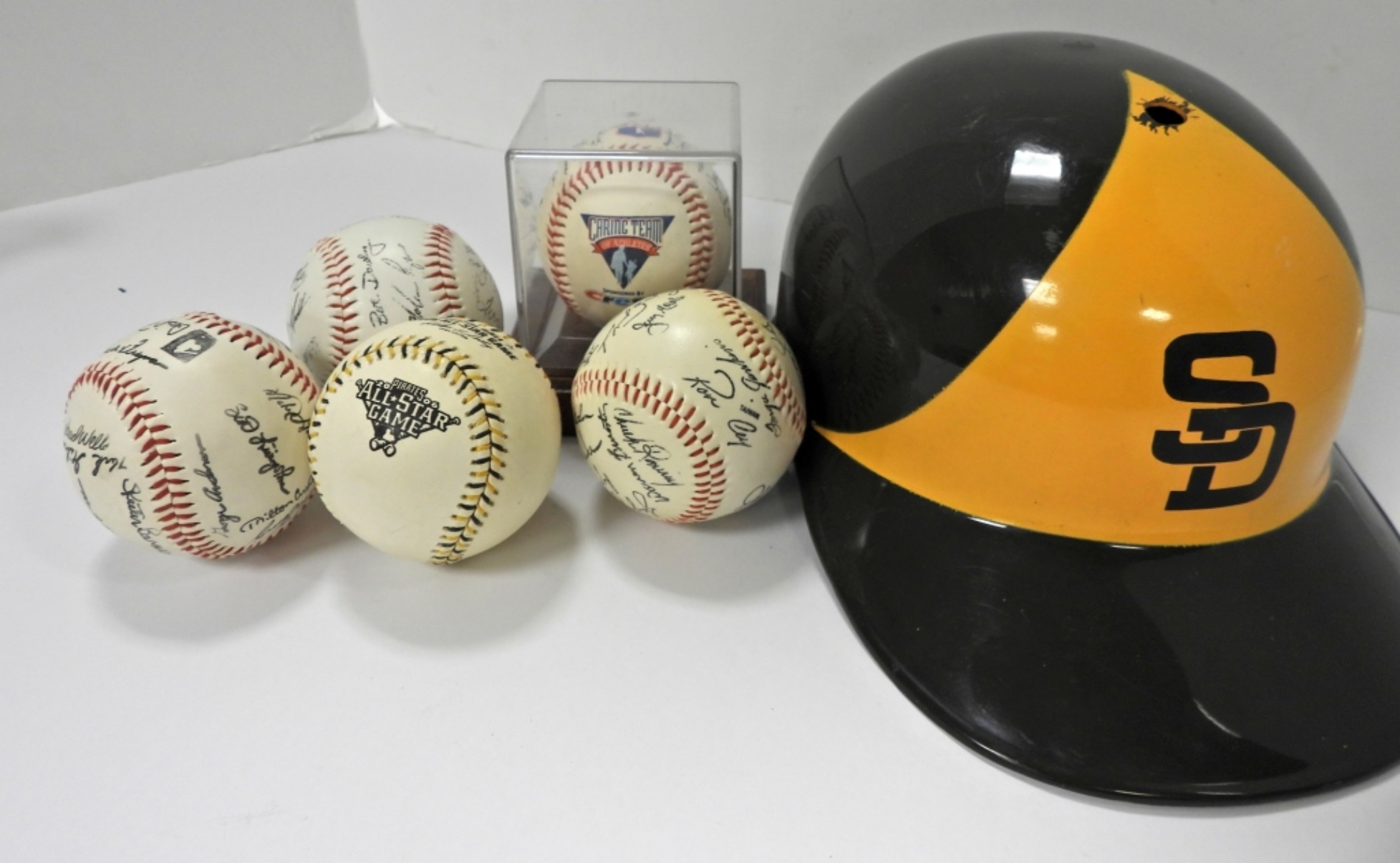 ALL FACSIMILE SIGNATURES on BALLS & SAN DIEGO BATTERS HAT SPORTS TOY / not real batter helmet