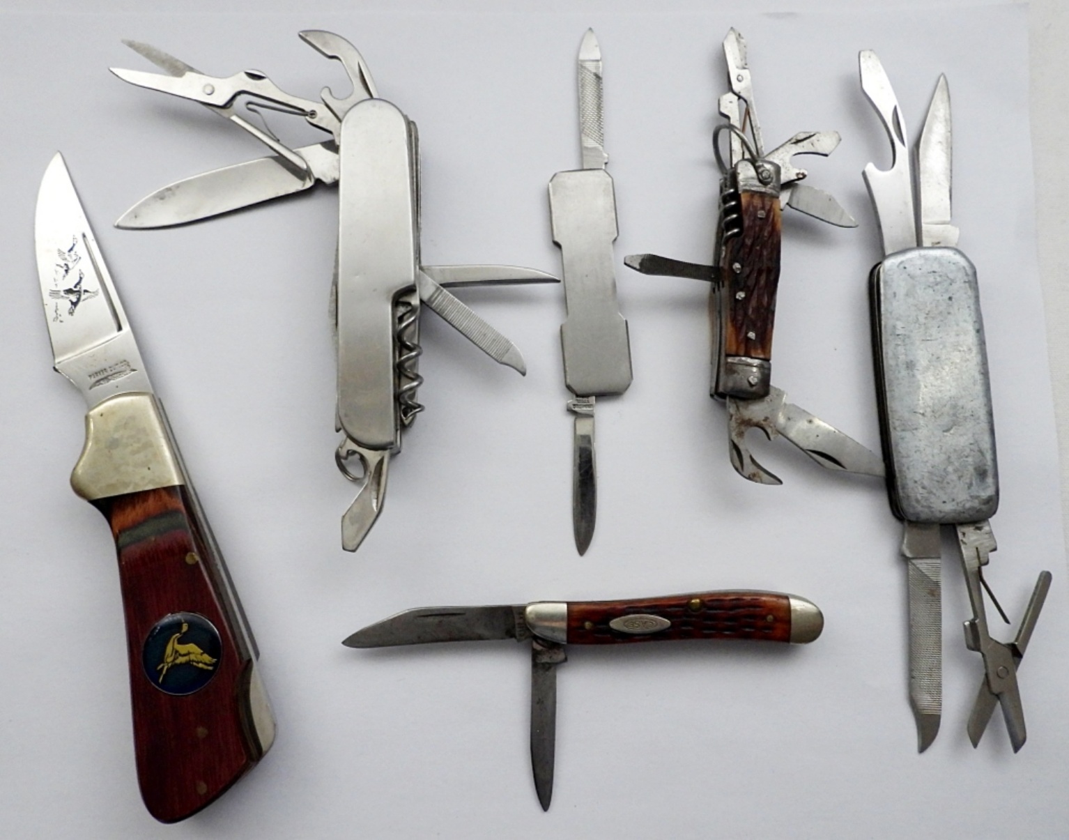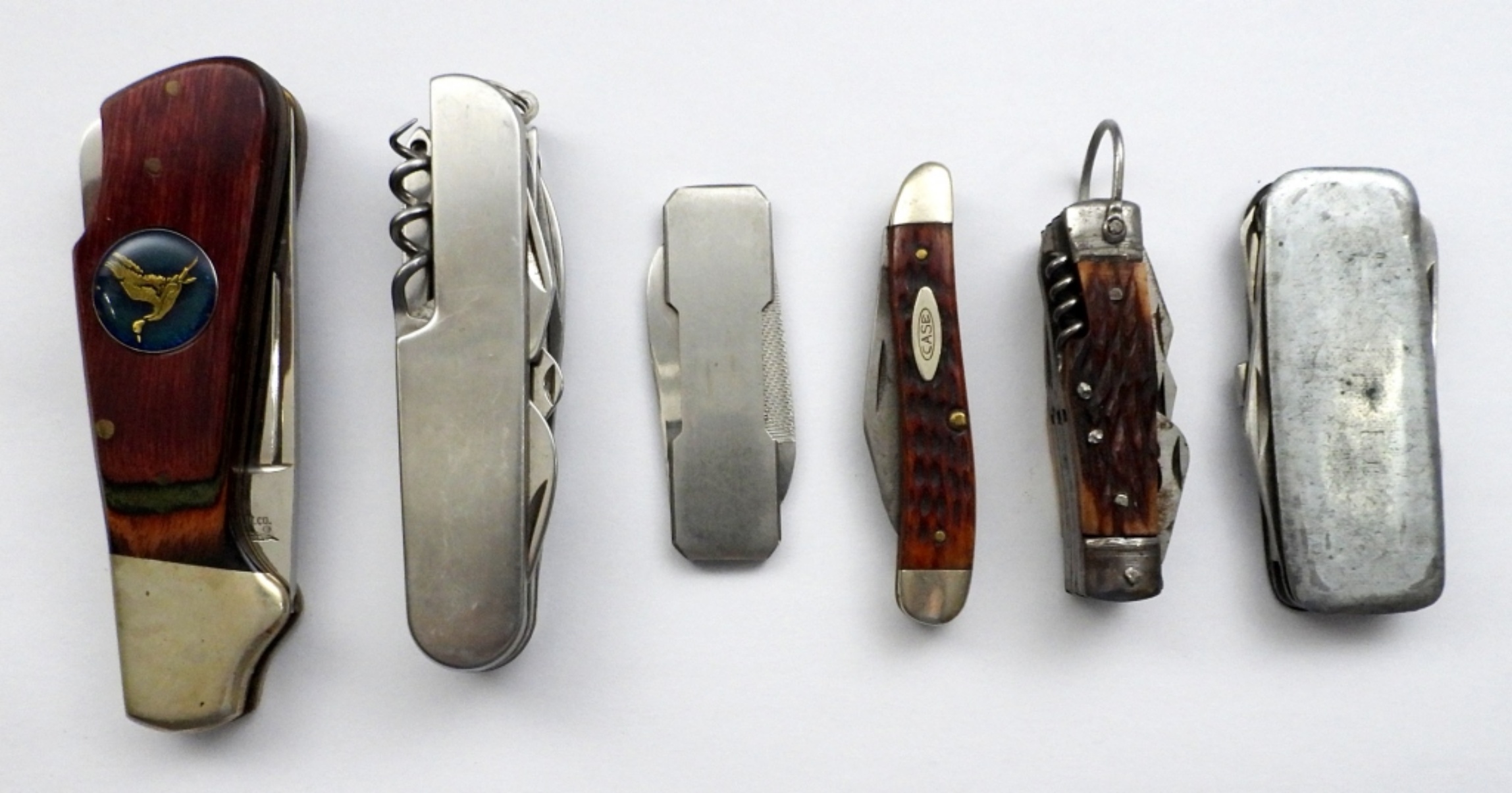 (3) MULTI-FUNCTION KNIVES (1) PARKER CUTLERY WOOD HANDLE KNIFE nice condition