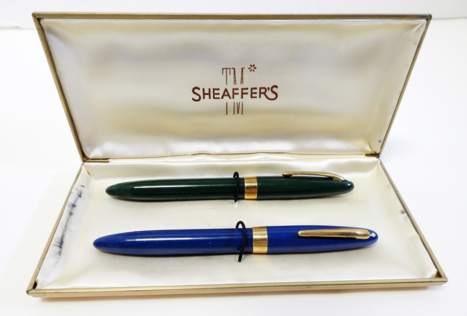 in SHEAFFER’S BOX unsure if original box – 14k GOLD NIBS – UNTESTED