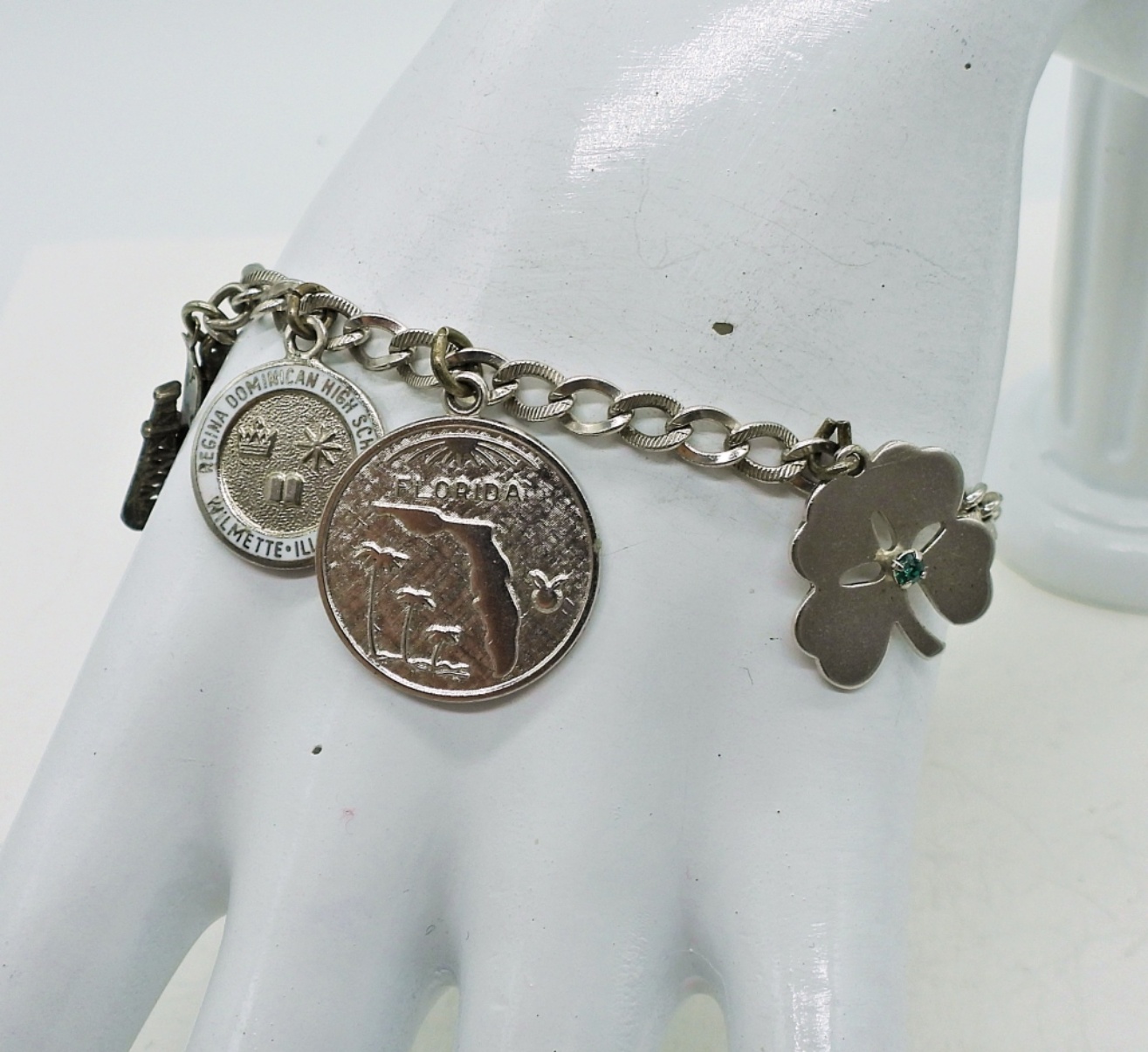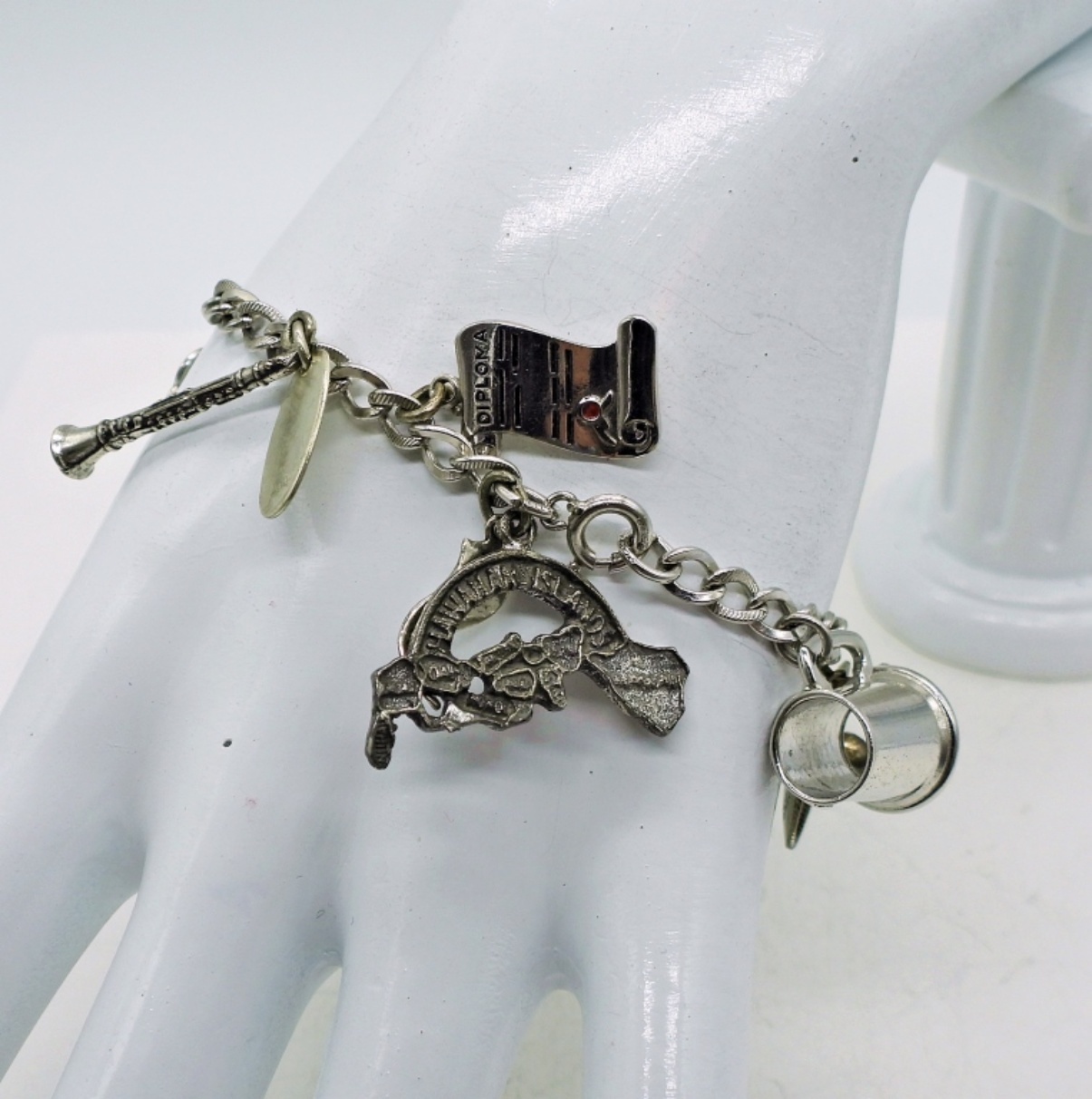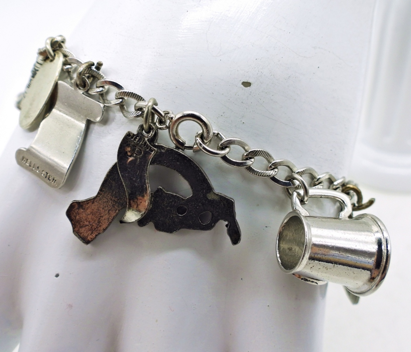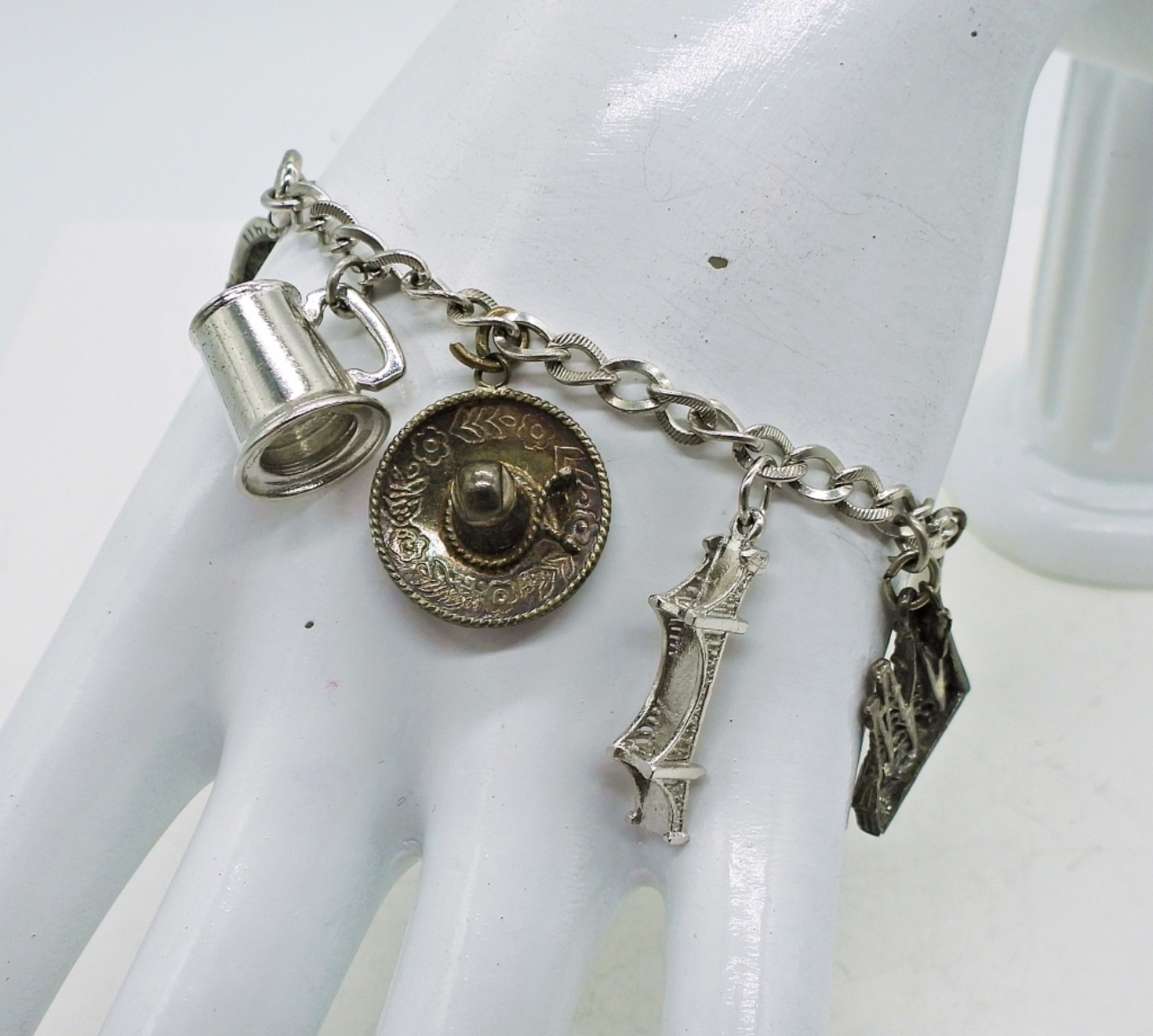 Vintage Sterling Charm Bracelet with 10 Charms. 7″, 18.1 DWT