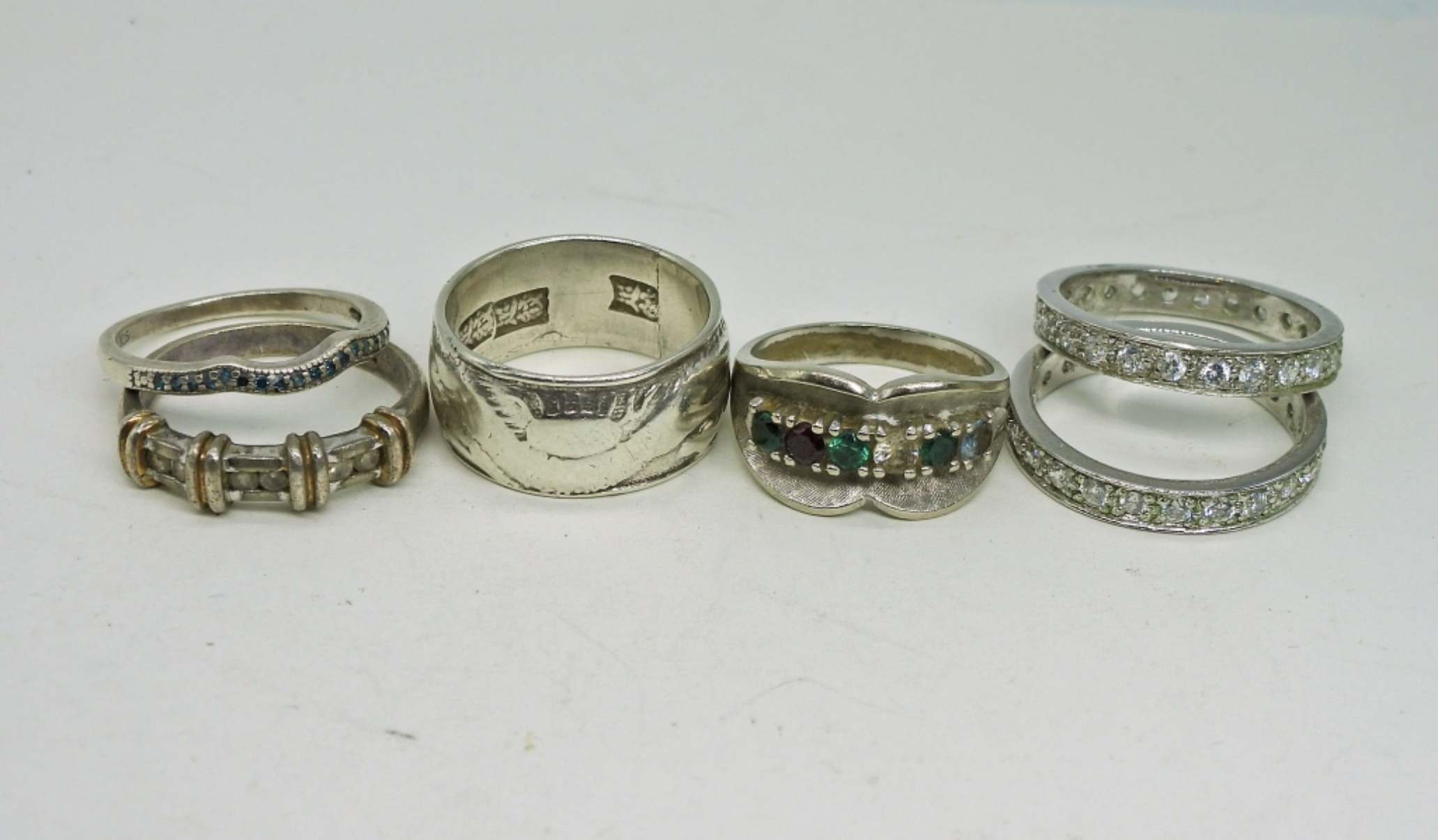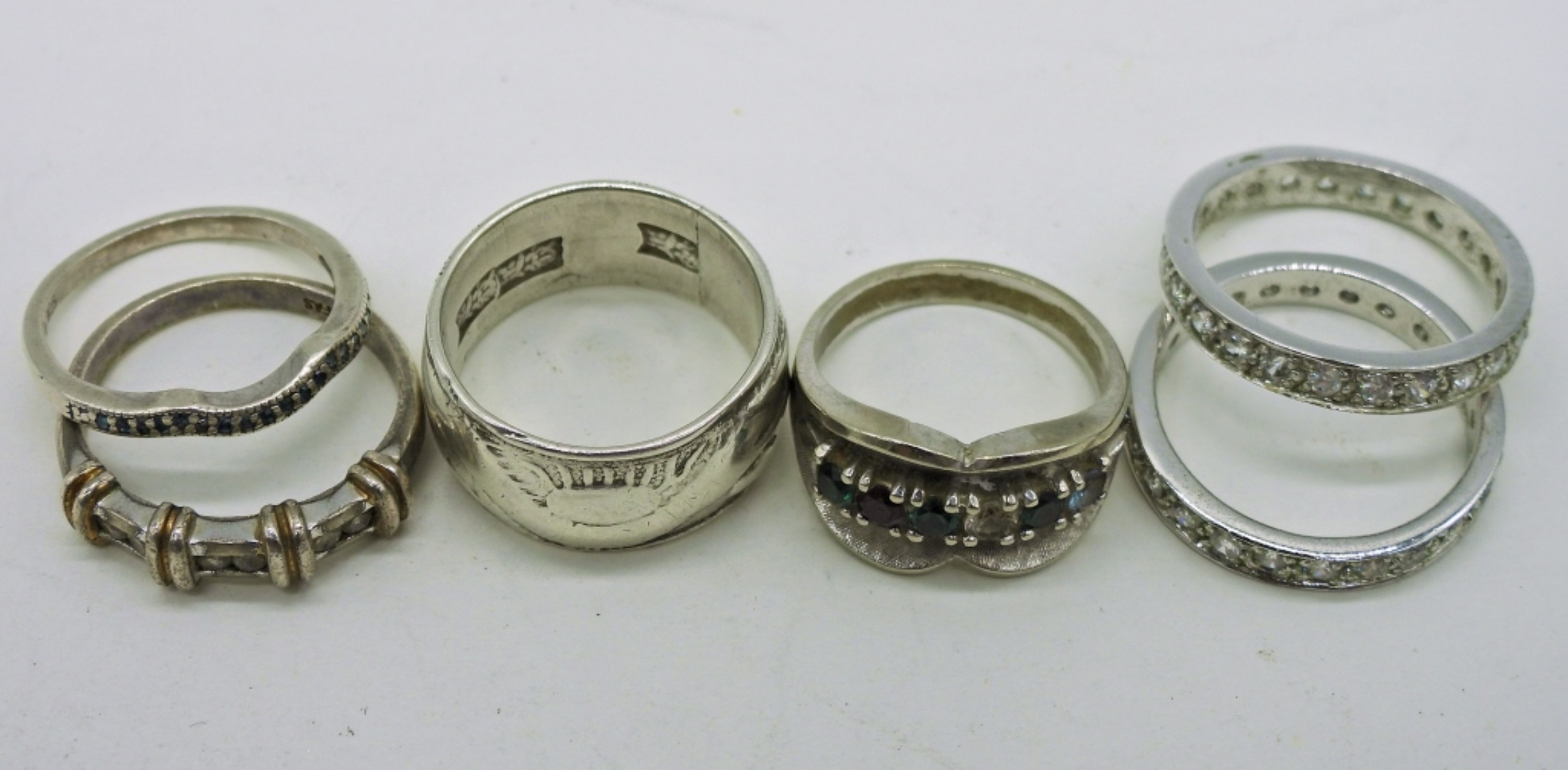 Six Sterling Rings with Gemstones. Sizes 6.5, 7, 8, 9. 14.8 DWT