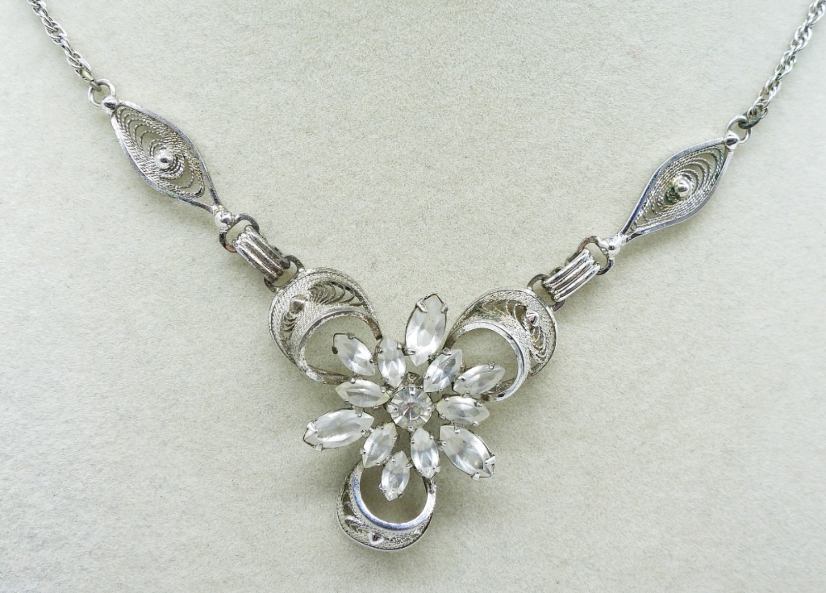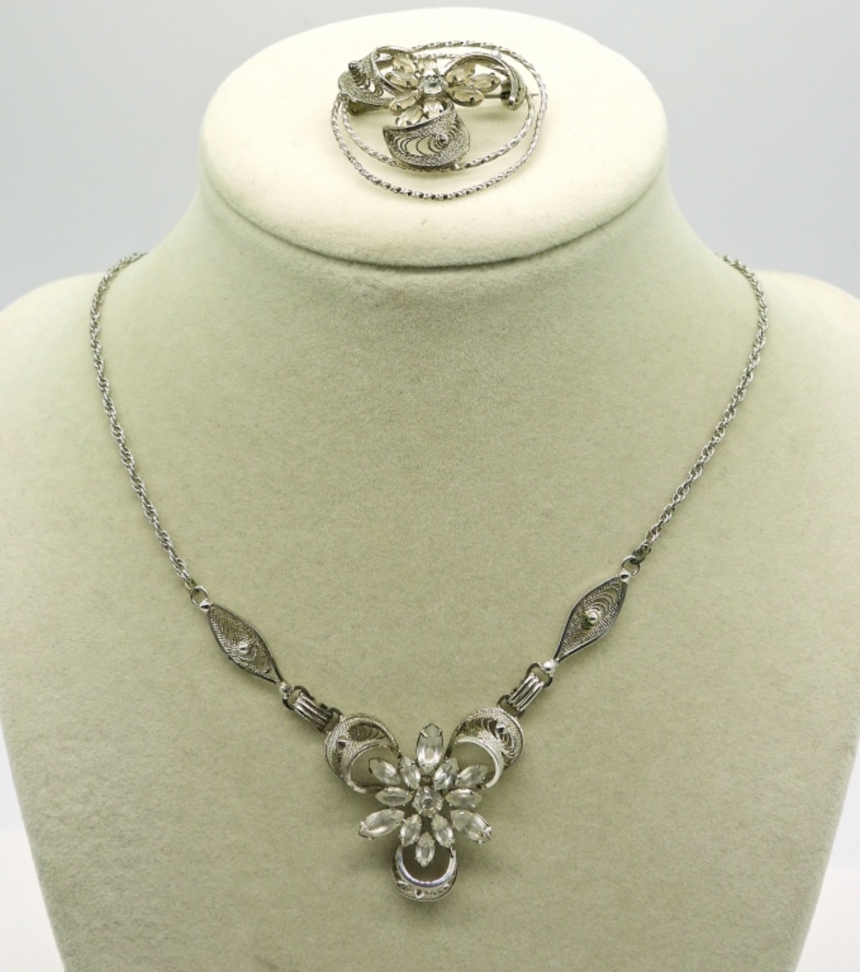 Vintage Sterling Matching Necklace & Brooch. Marked Am Lee Sterling. 15″ Necklace. 9.5 DWT