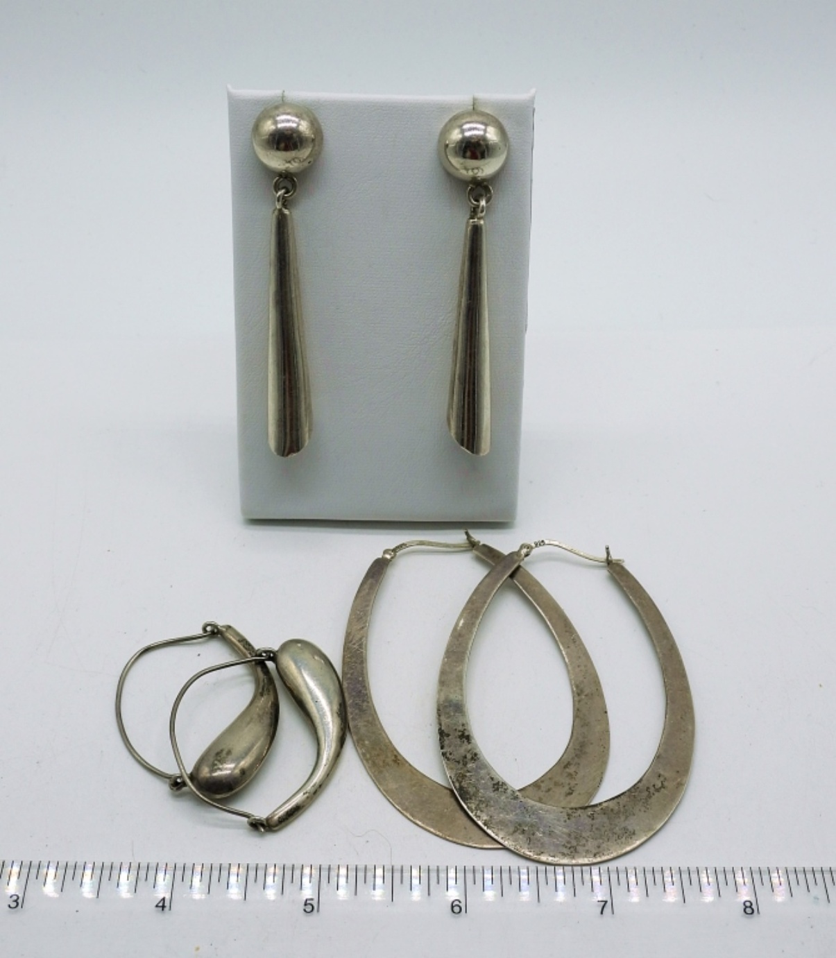 Three pair of vintage solid sterling silver pierced earrings. See Photos for measurements. 27.9 DWT