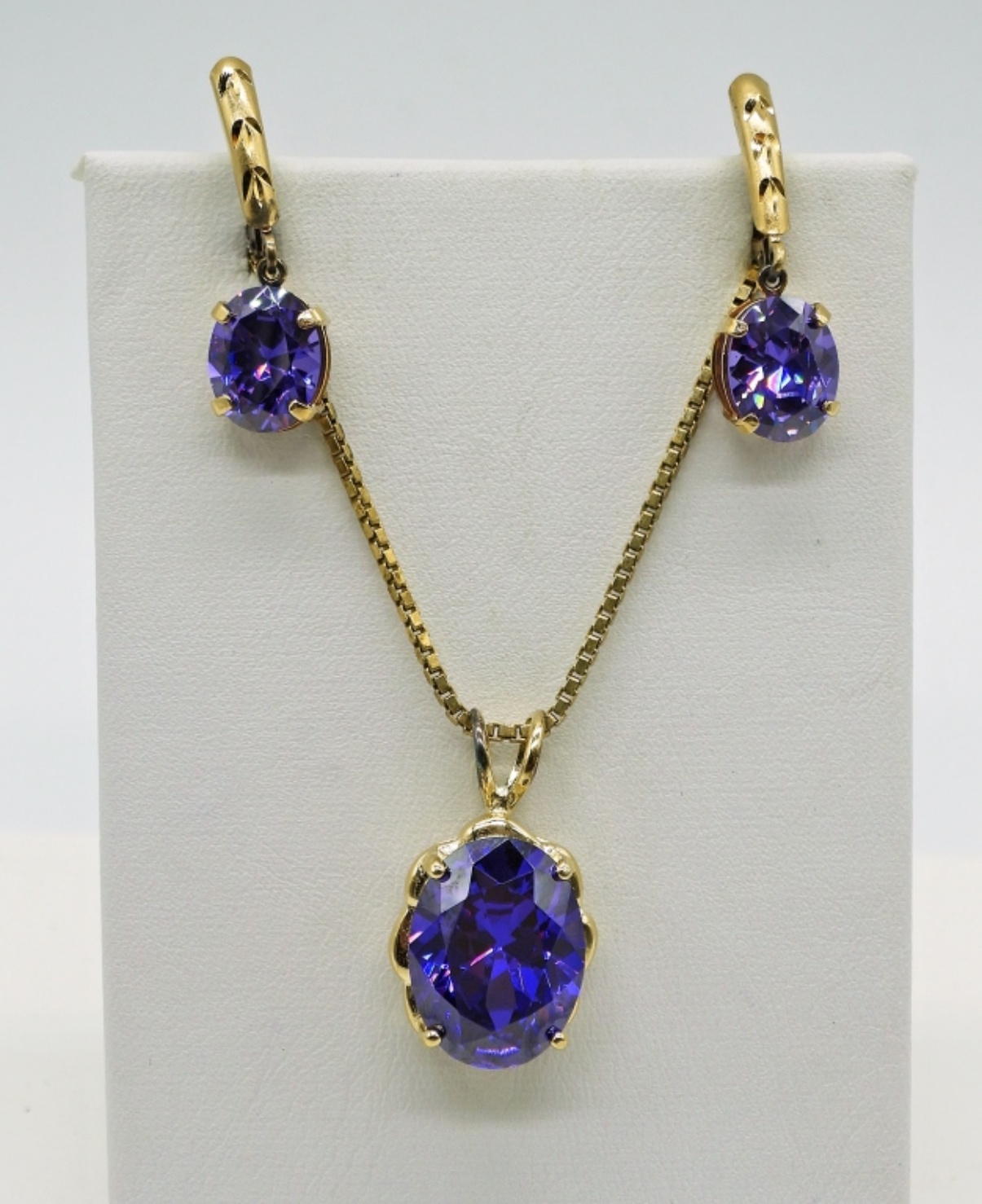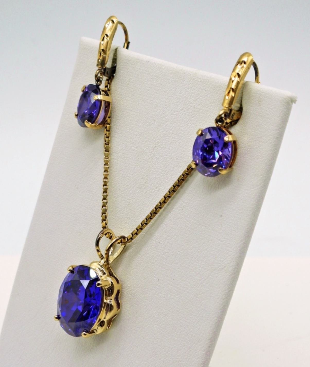 Sterling Silver, Gold Tone Set with Purple Gemstones. Chain is 30″. 10.6 DWT