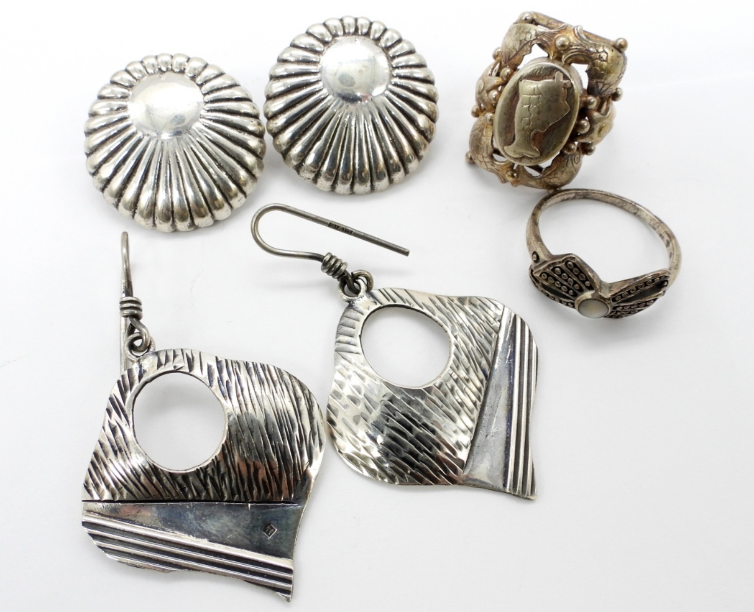 23.1 DWT. PIERCED & CLIP ON EARRINGS, RINGS SIZES 6.5 & 9.