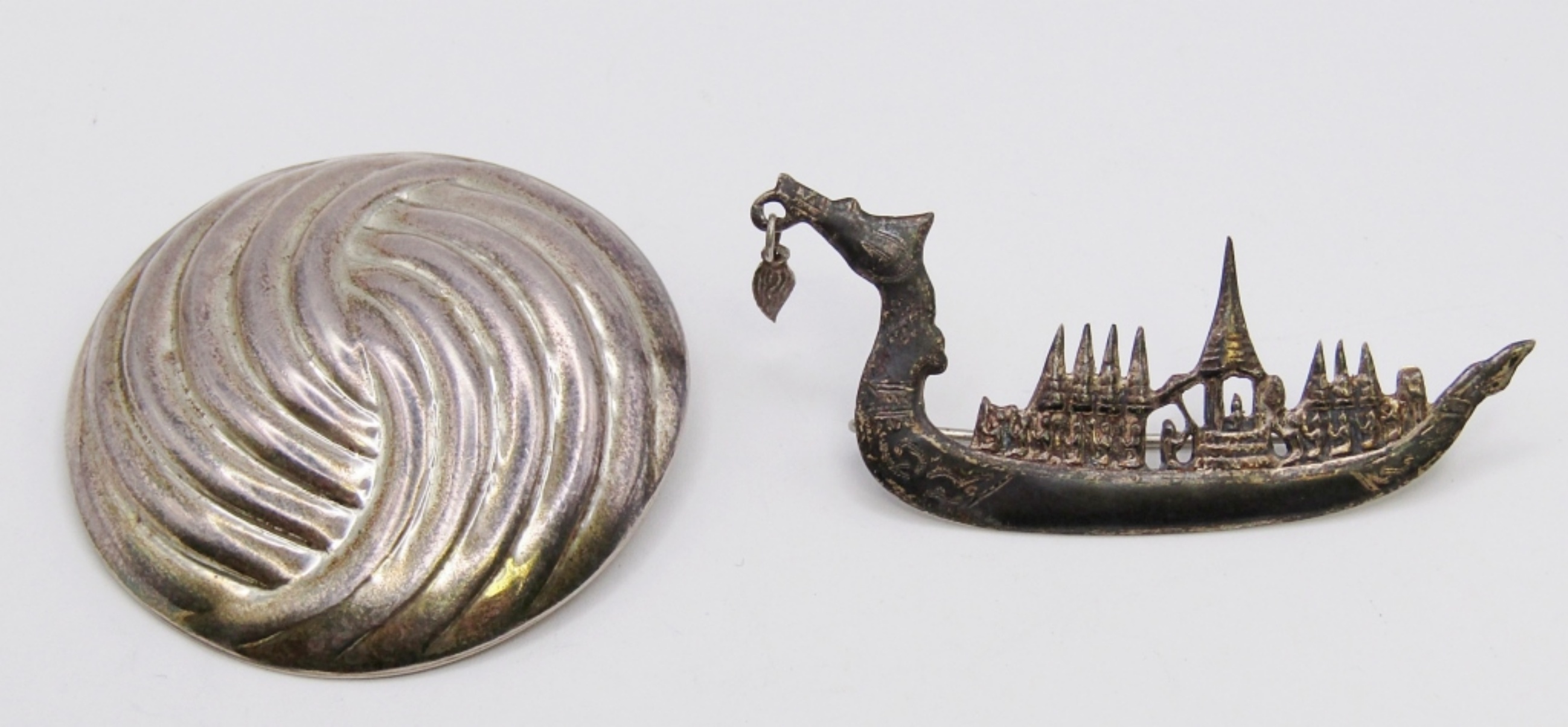 17 DWT. 1.75″ ROUND STAMPED “MEXICO” & 2.25″ RIVER BOAT- STAMP NOT LEGIBLE.