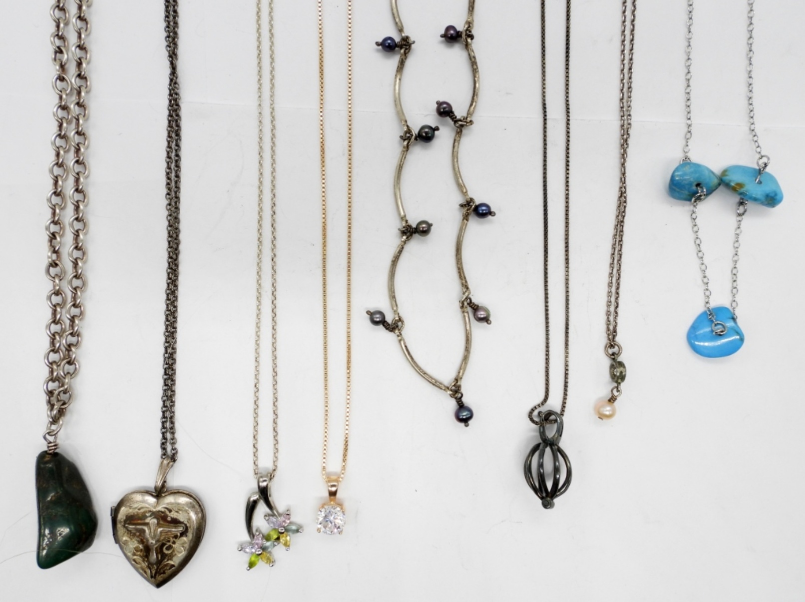 31 DWT. VARIOUS STYLES INCLUDING LOCKET, GEMSTONES, GOLD TONE. LENGTHS: (4) 16″, (4) 18″