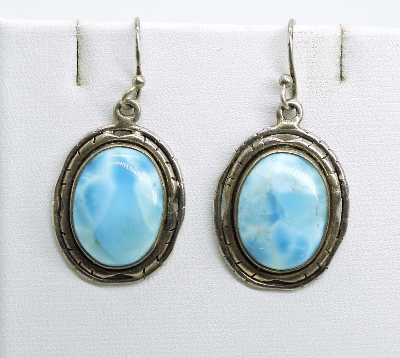 Sterling Larimar Earrings, Marked 925. 5.7 DWT