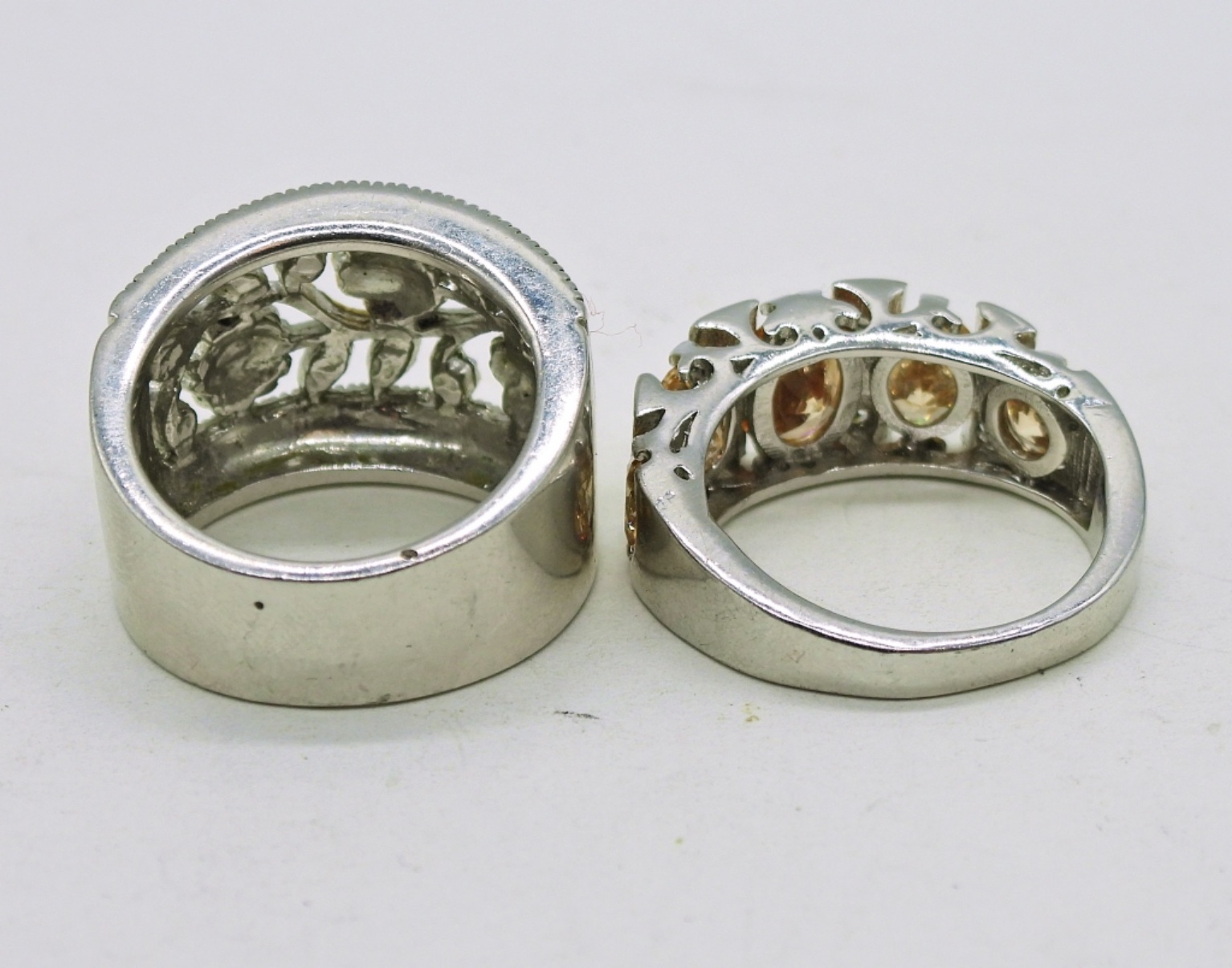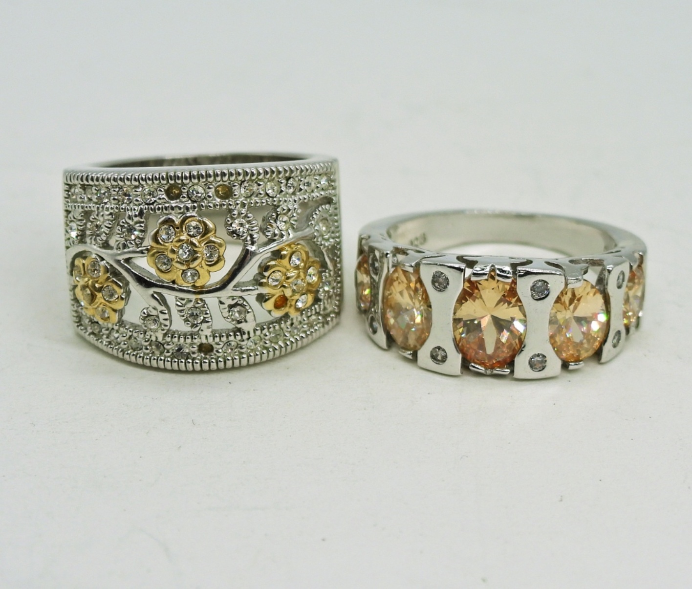 Two Sterling Yellow Gemstone Rings, Marked 925. 11 DWT