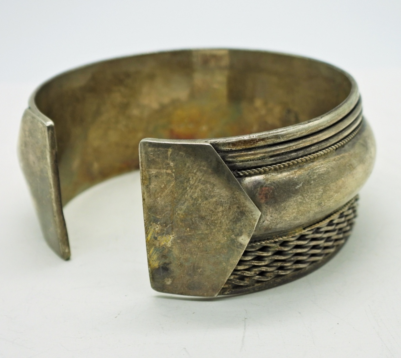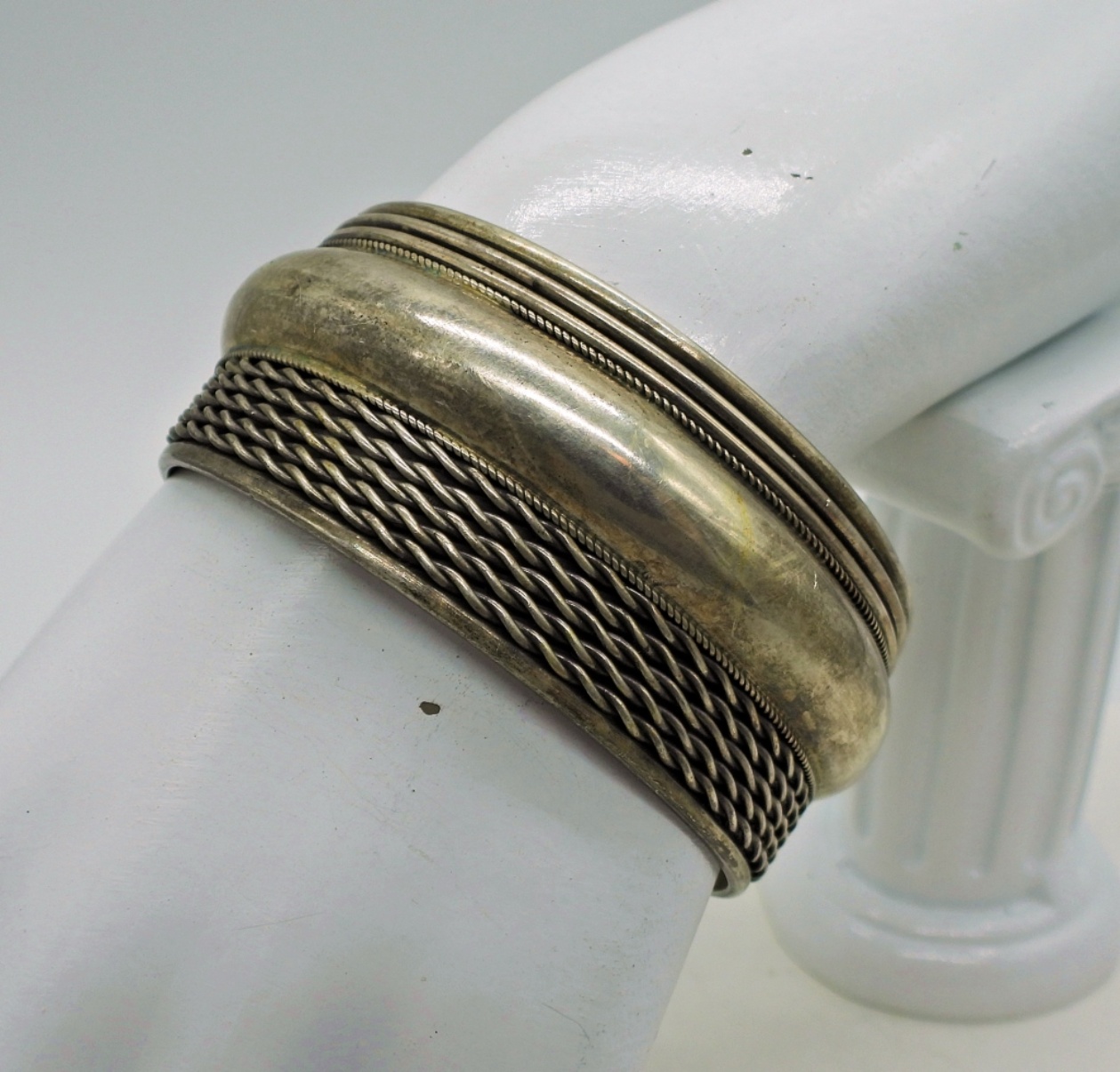 Vintage Sterling Cuff Bracelet, 7.5″ around & 1 1/4″ wide. Marked FAS 925. Very Heavy! 39.2 DWT