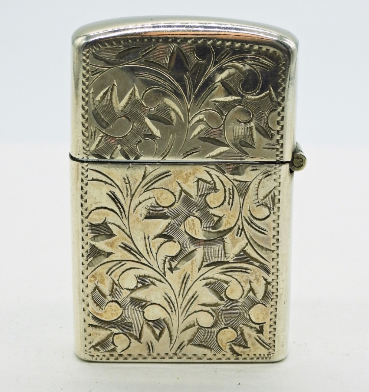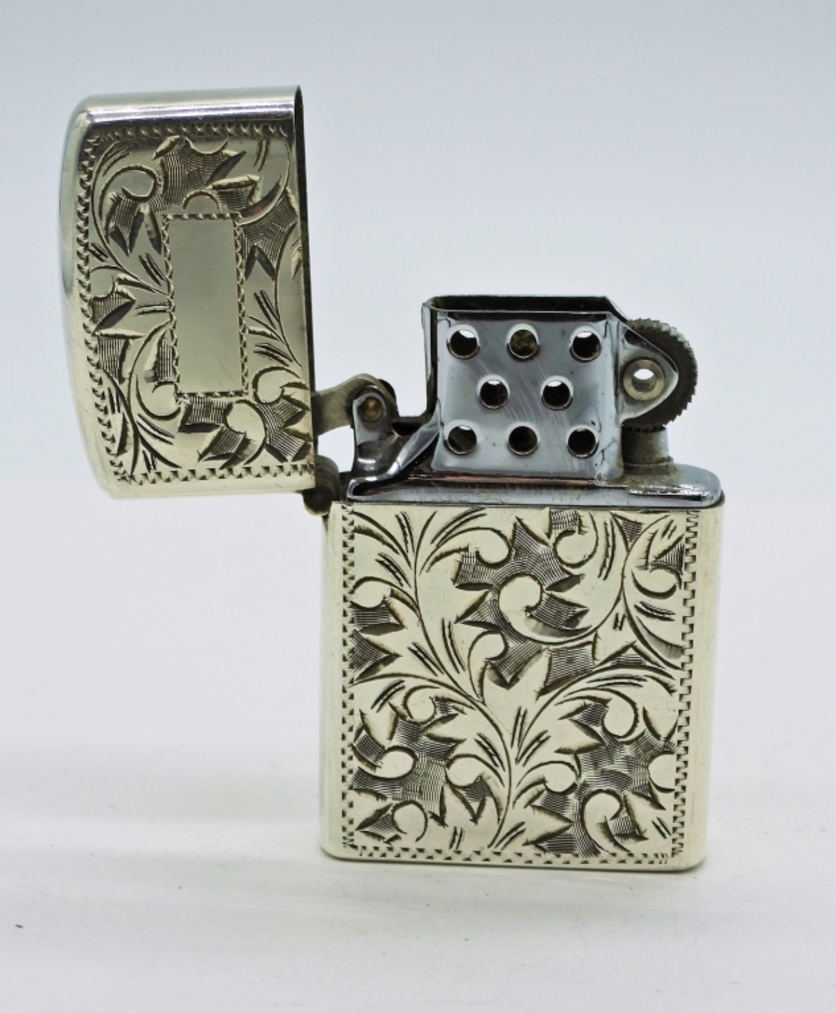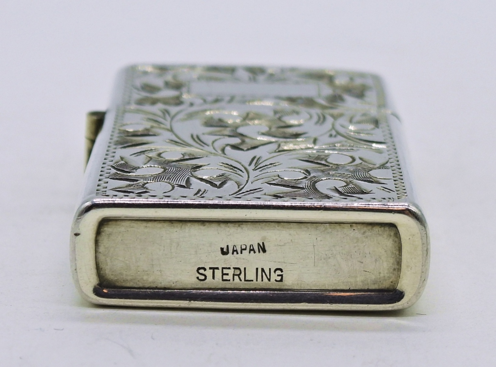 Floral Etched Sterling Silver Mini Lighter, Engravable. 1 3/4″ Long, 1″ Wide. Marked “Japan Sterling”. 18.9 DWT