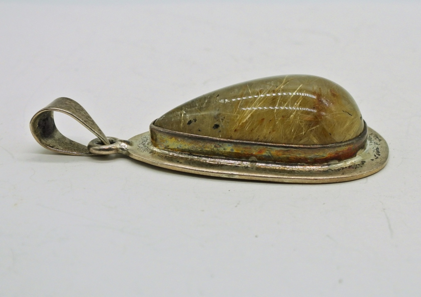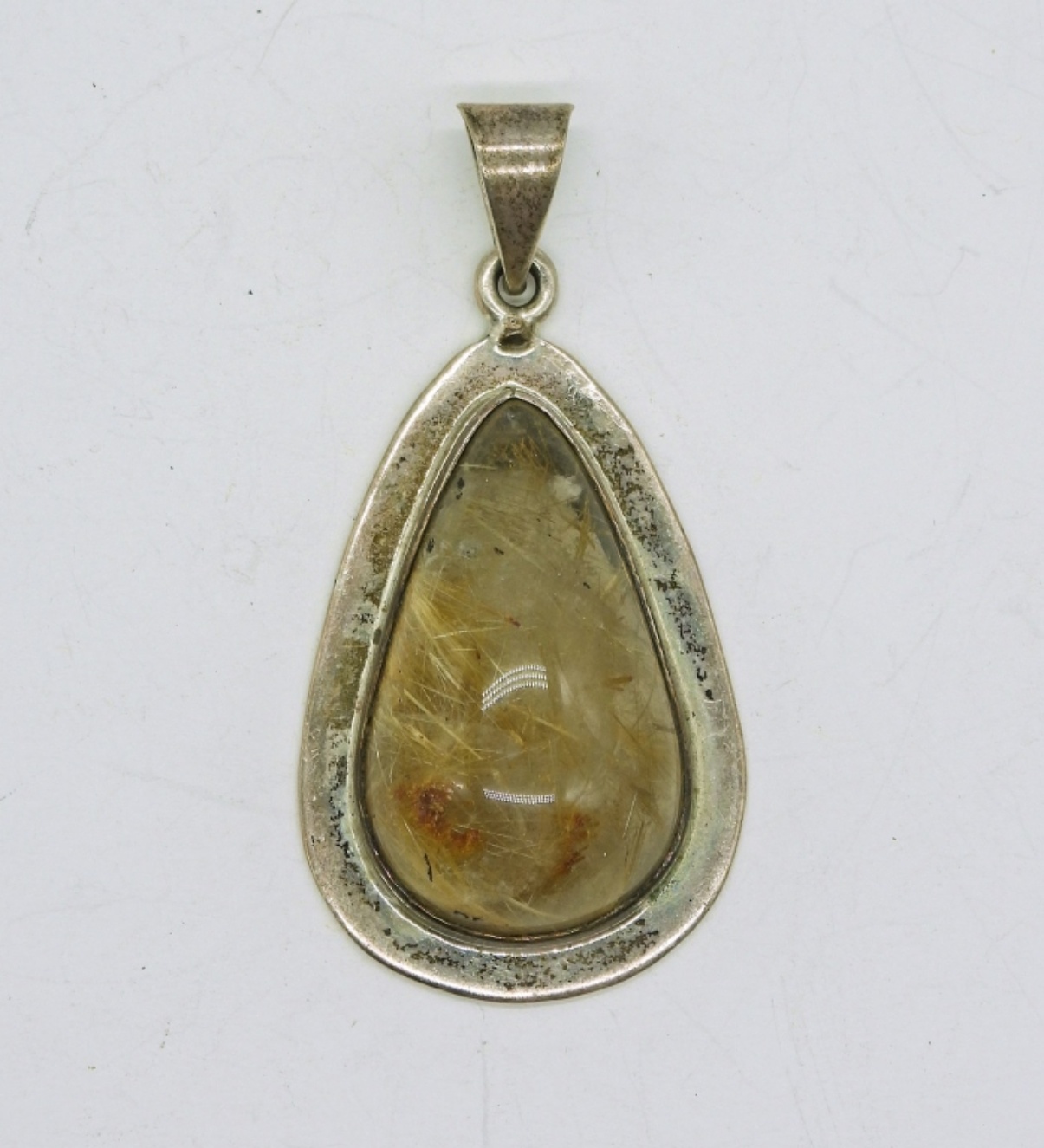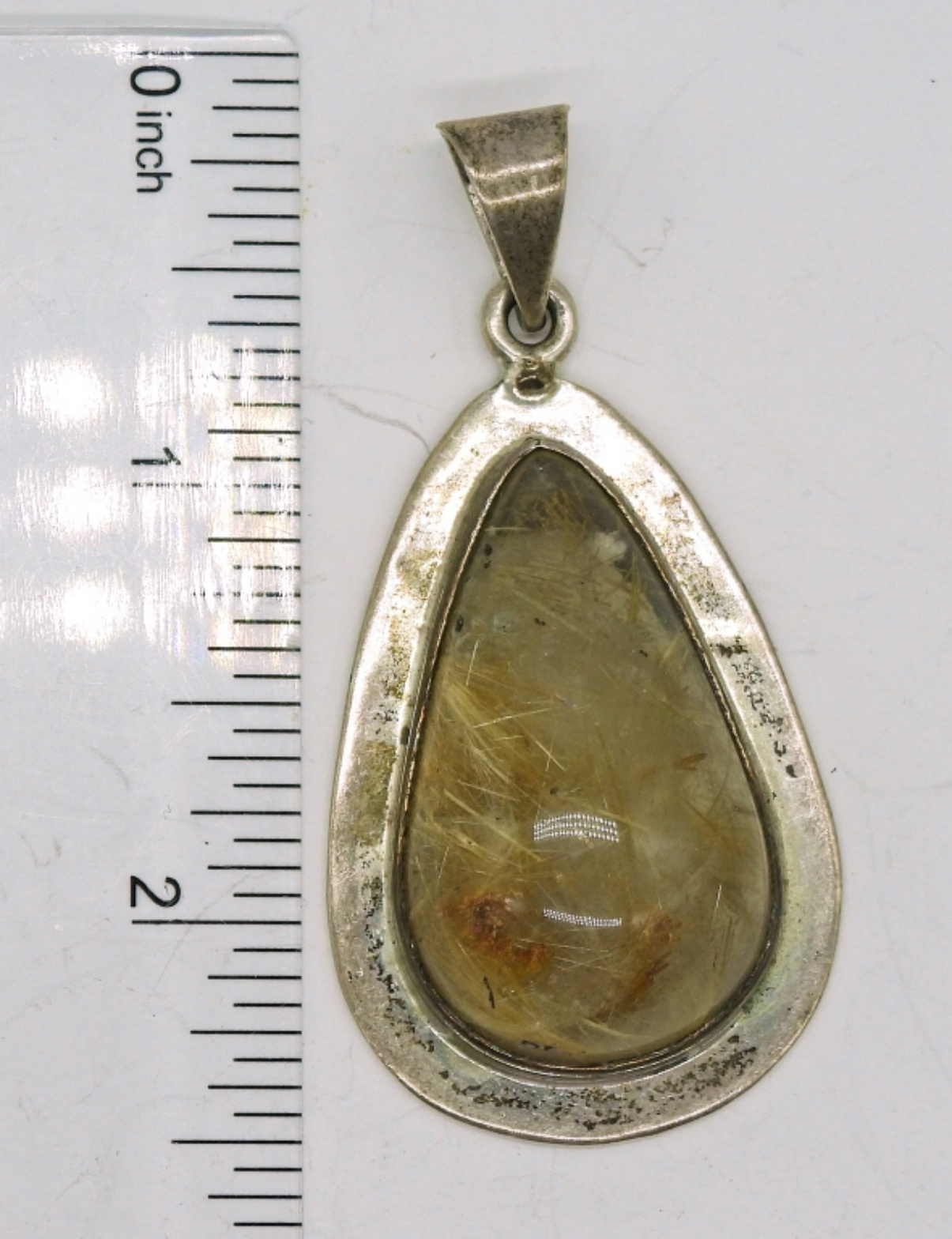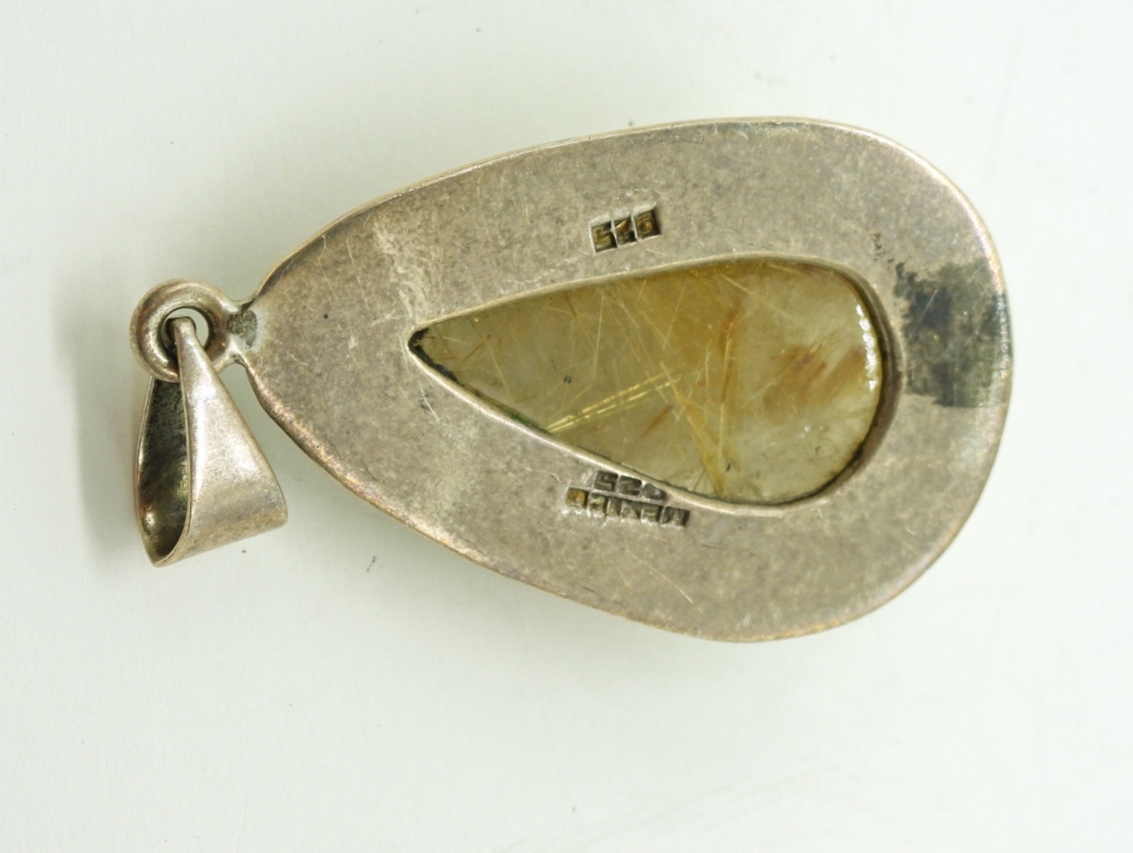 Sterling Mexico 925 Rutilated Quartz Pendant. 2 1/4″ Long, 1″ Wide. 15.5 DWT