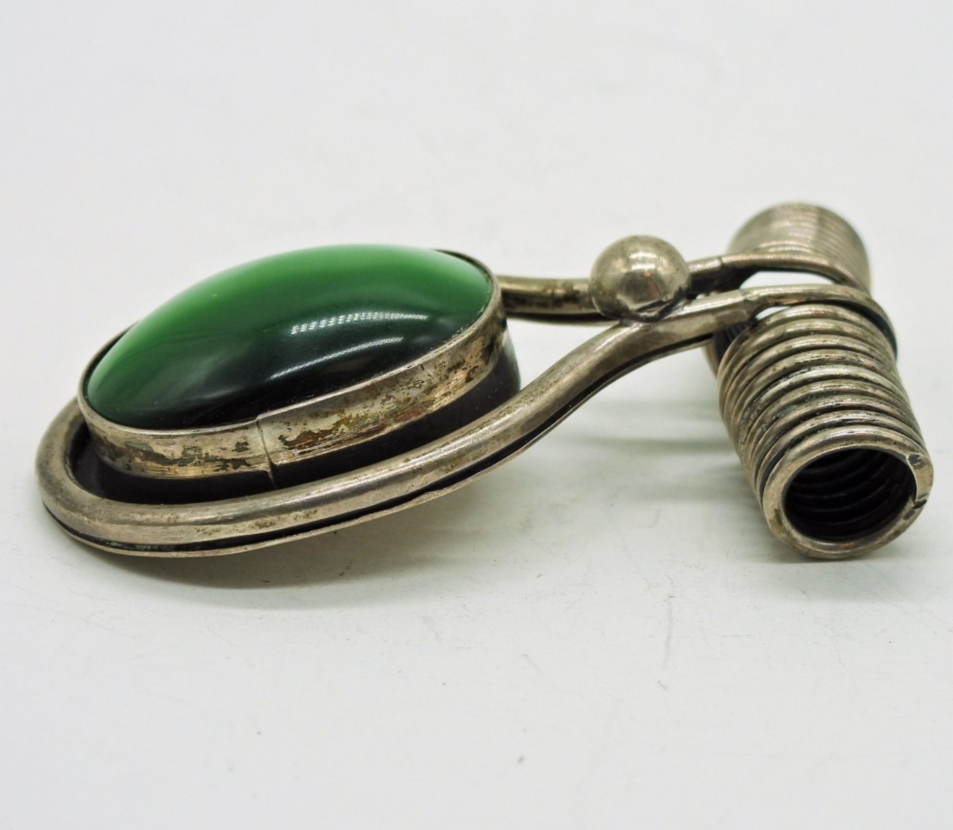 Large Green Cats Eye Colored Gemstone Pendant in Sterling Silver. 2.5″ Long, 1.5″ Wide. 25.9 DWT