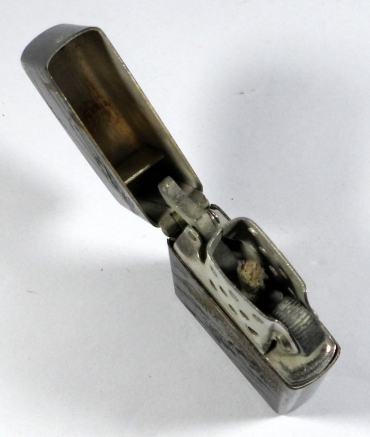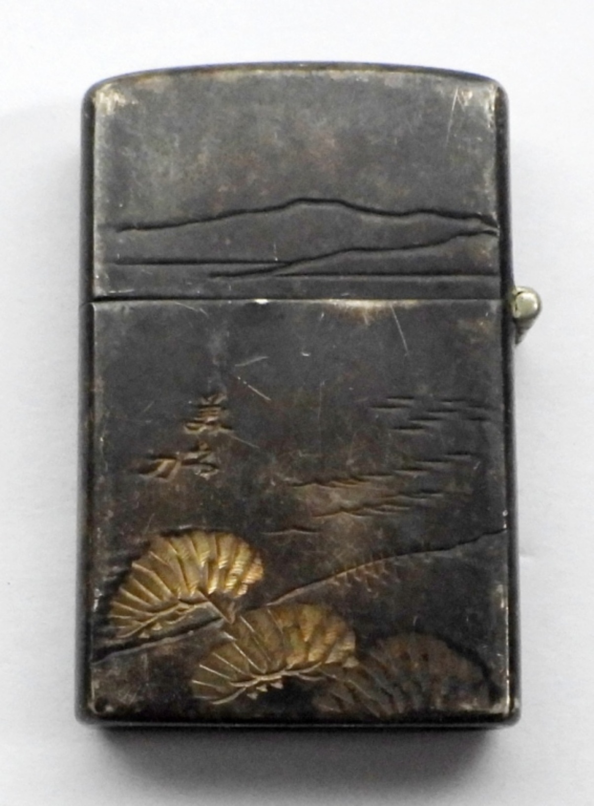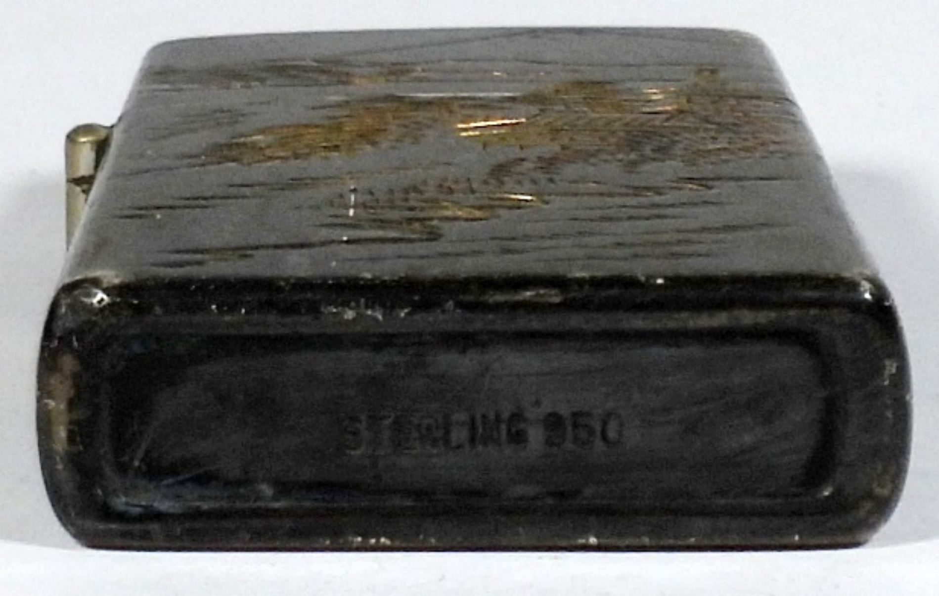 VINTAGE FLIP TOP LIGHTER 950 STERLING SILVER DOUBLE SIDED JAPANESE DESIGN ENGRAVED, USED CONDITION