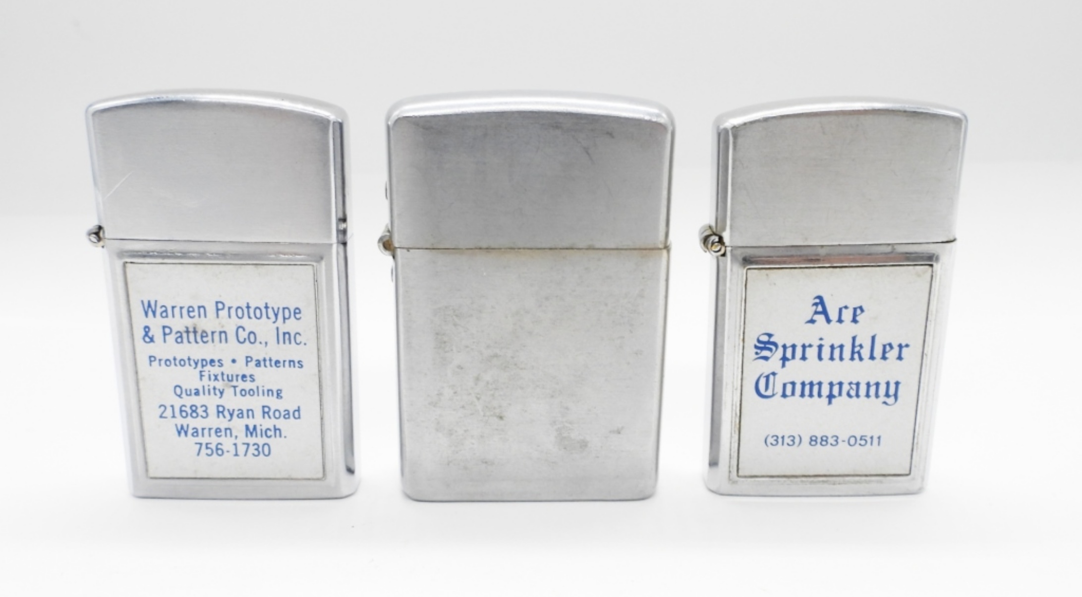 1 CHAMP FRIED LIGHTER, 1- BARLOW FIRED ” WARREN PROTOTYPE & PATTERN CO. INC”, 1- MADE IN JAPAN, ” ARE SPRINKLER COMPANY”