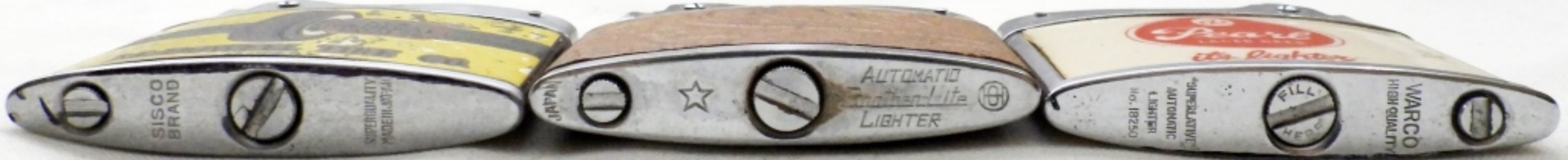 WARCO, SISCO, & BROTHER-LITE AUTOMATIC VINTAGE LIGHTERS, USED CONDITION