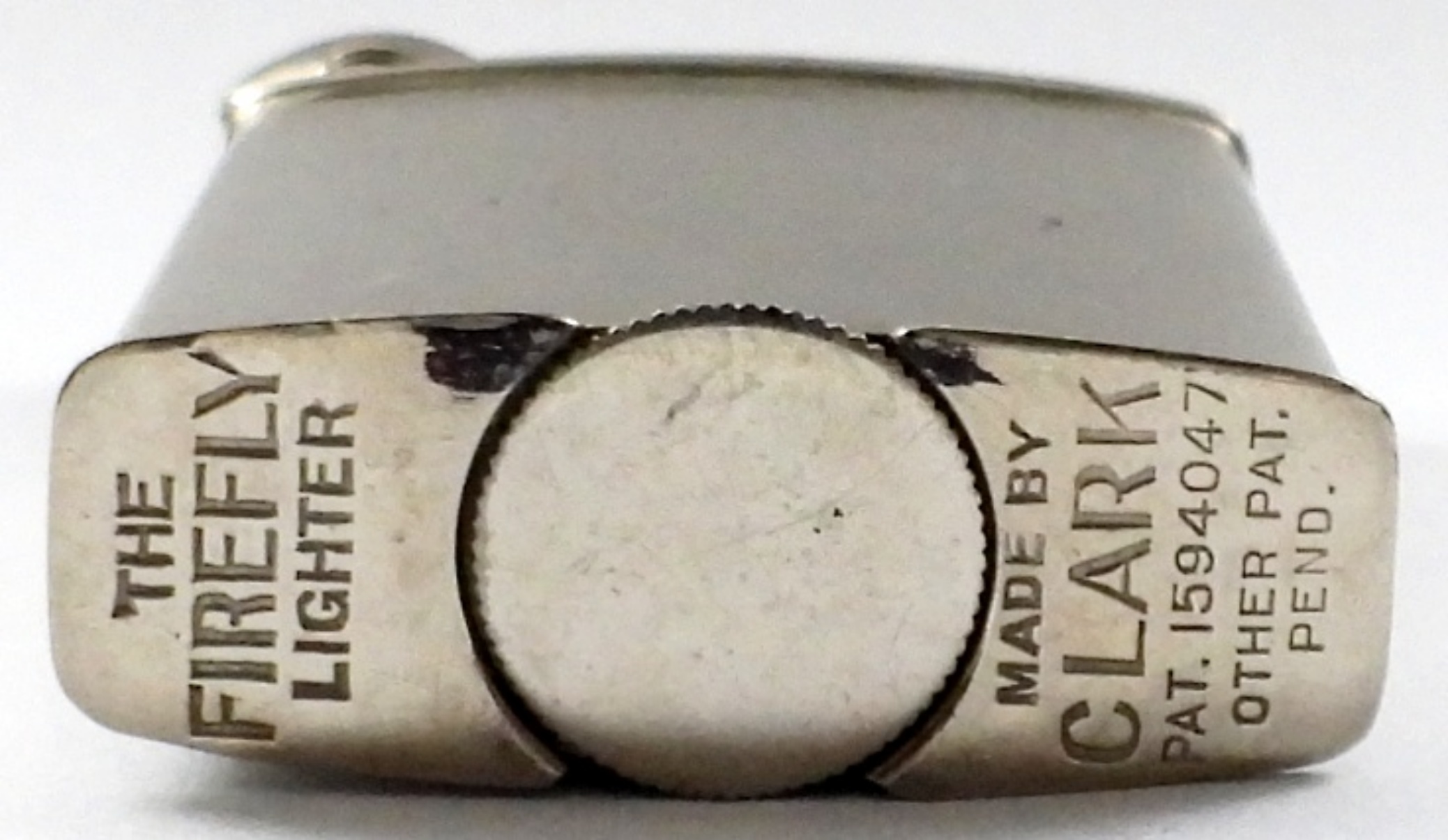 VINTAGE CLARK THE FIREFLY LIFT ARM LIGHTER, ENGRAVED, USED CONDITION