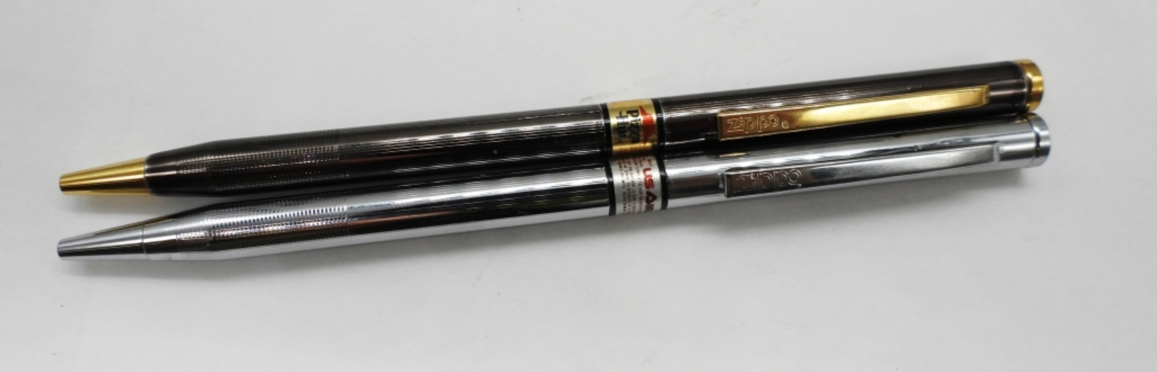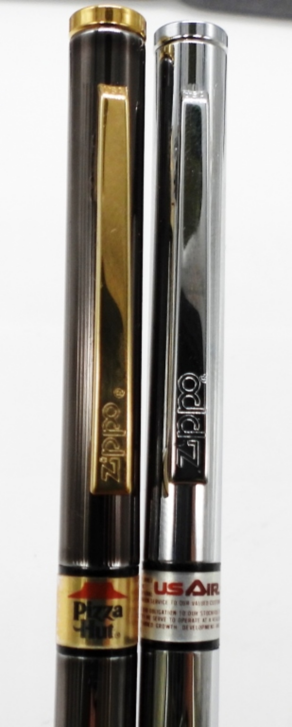 1- PIZZA HUT, 1- US AIR, IN ZIPPO CASES, MARKED ZIPPO ON THE PENS