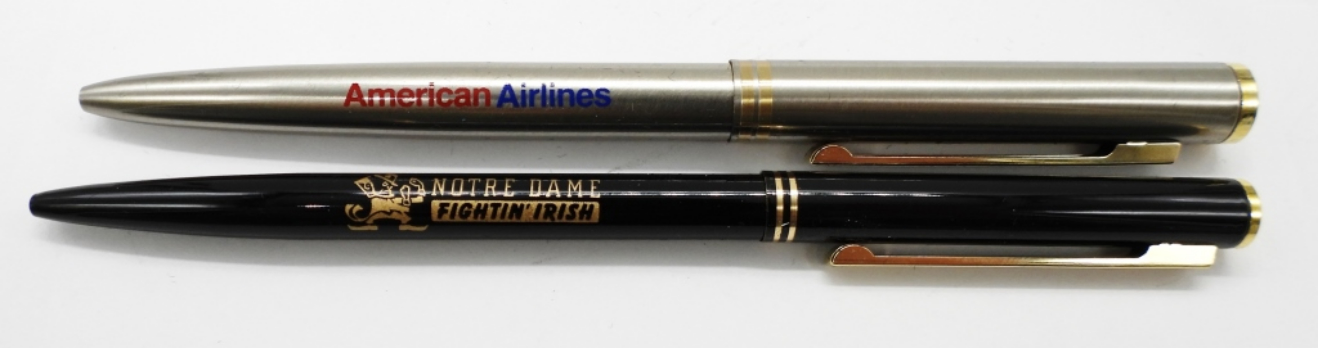 1- AMERICAN AIRLINES, 1 NOTRE DAME FIGHTIN’ IRISH, MARKED ZIPPO ON THE PINS