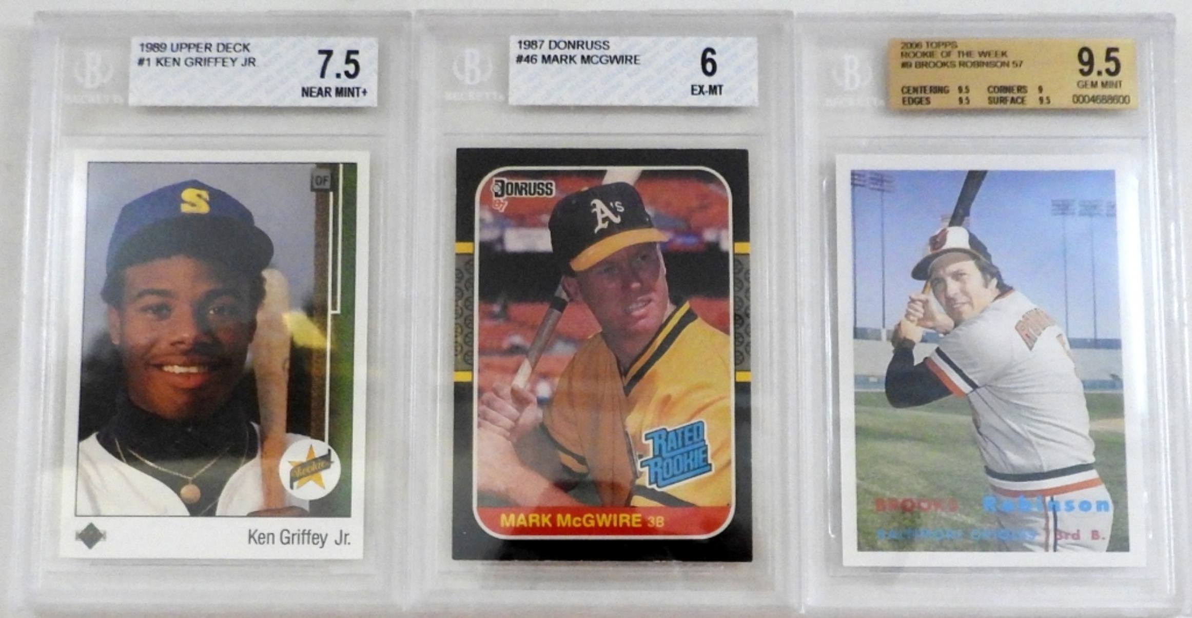 MARK McGWIRE 1987 DONRUSS, KEN GRIFFEY JR 1989 TT, BROOKS ROBINSON 2006 TOPPS