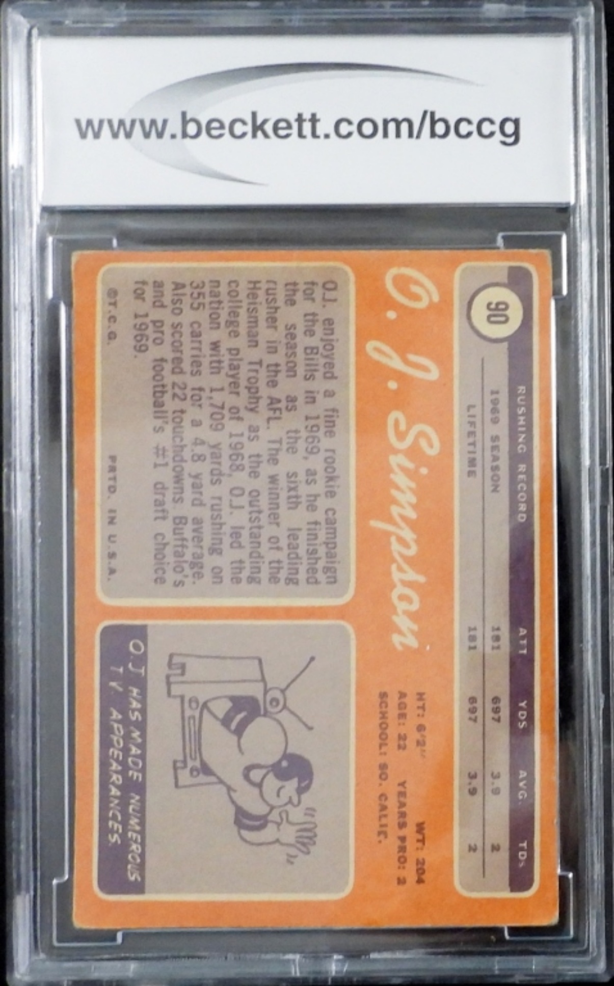 1970 TOPPS FOOTBALL CARD #90 O.J. SIMPSON GRADED BY BCCG 6