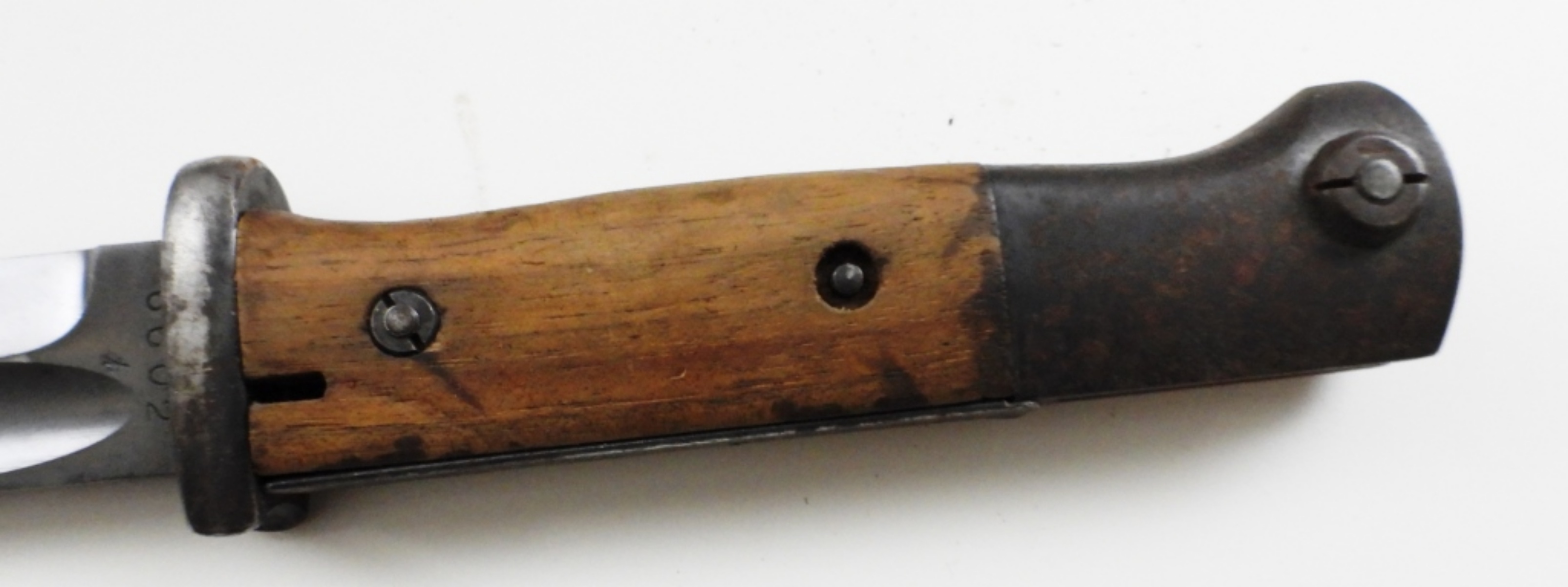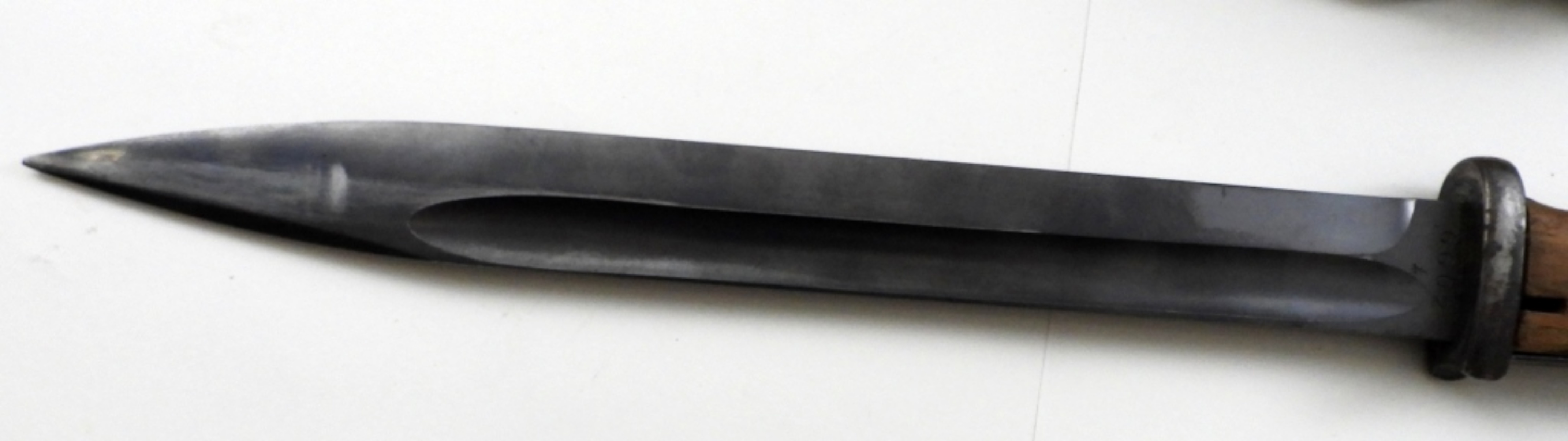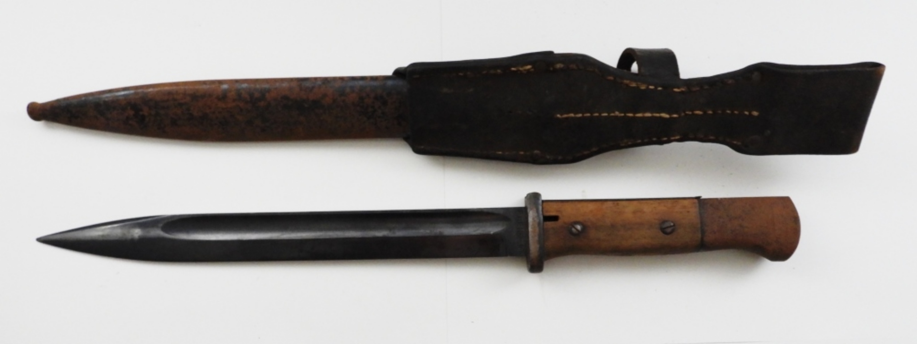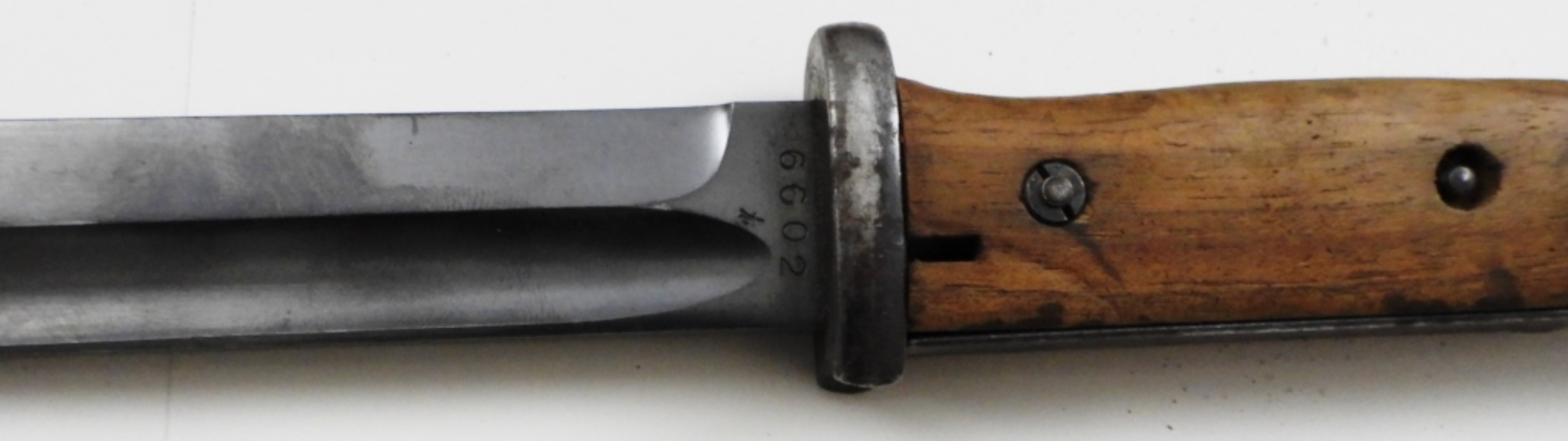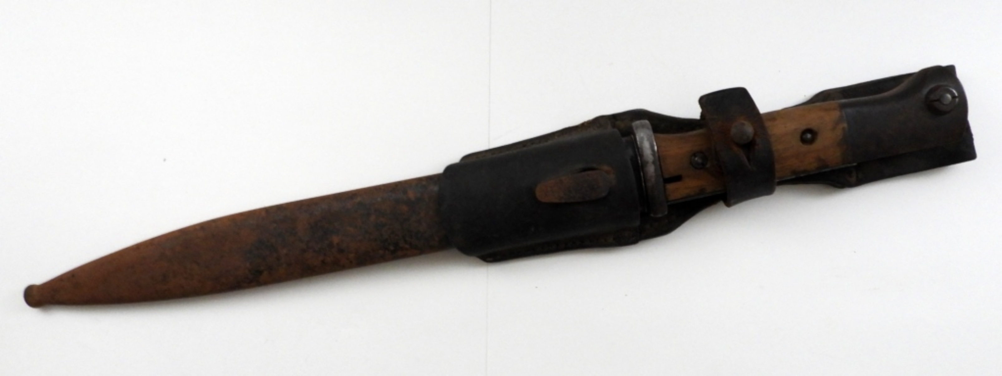 10″ BLADE, STAMPED 6602 T, E.U.F. HORSTER, SCABBARD DOES NOT MATCH STAMPED 5395 (RUST COVER THE SCABBARD), THE BACK OF THE BOLT IS MISSING ON THE HANDLE