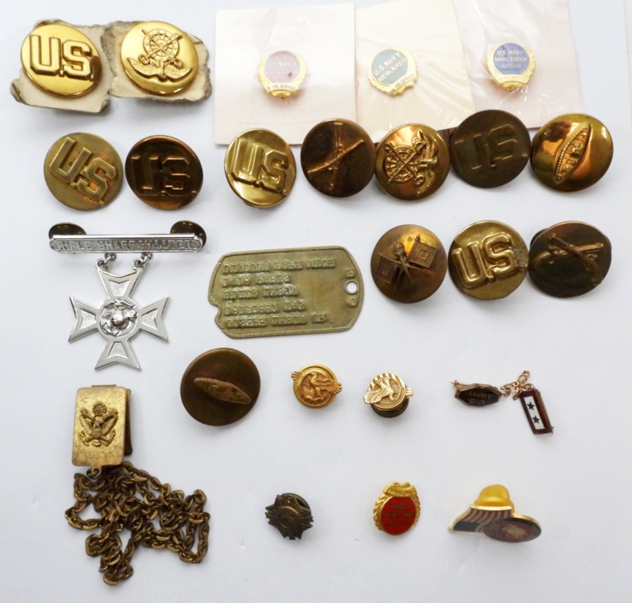 RIFLE SHARPSHOOTER, DOG TAG, U.S. PIN & MORE