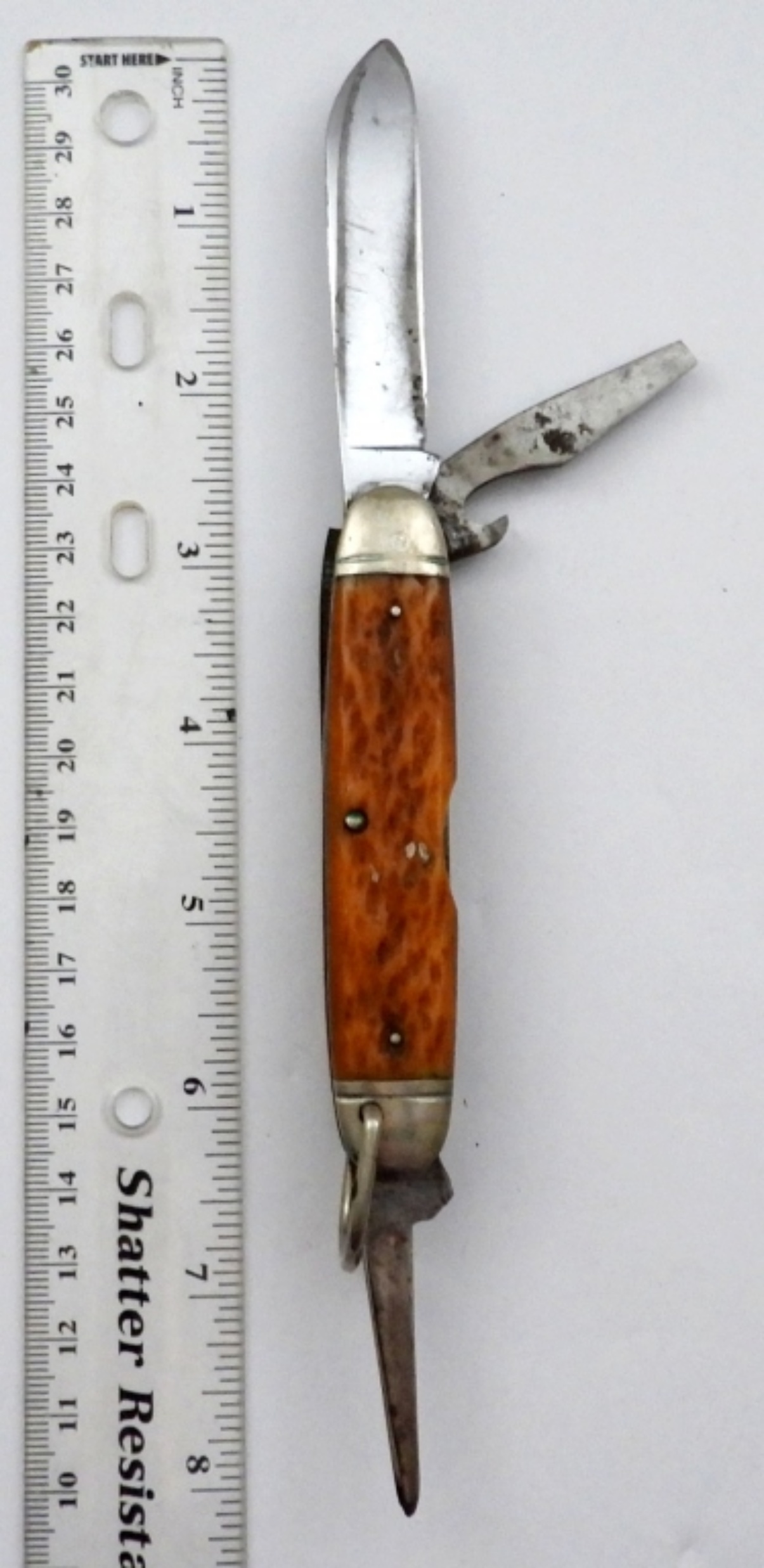 VINTAGE 3-BLADE MULTI-TOOL SCOUT CAMP POCKET KNIFE – USED CONDITION