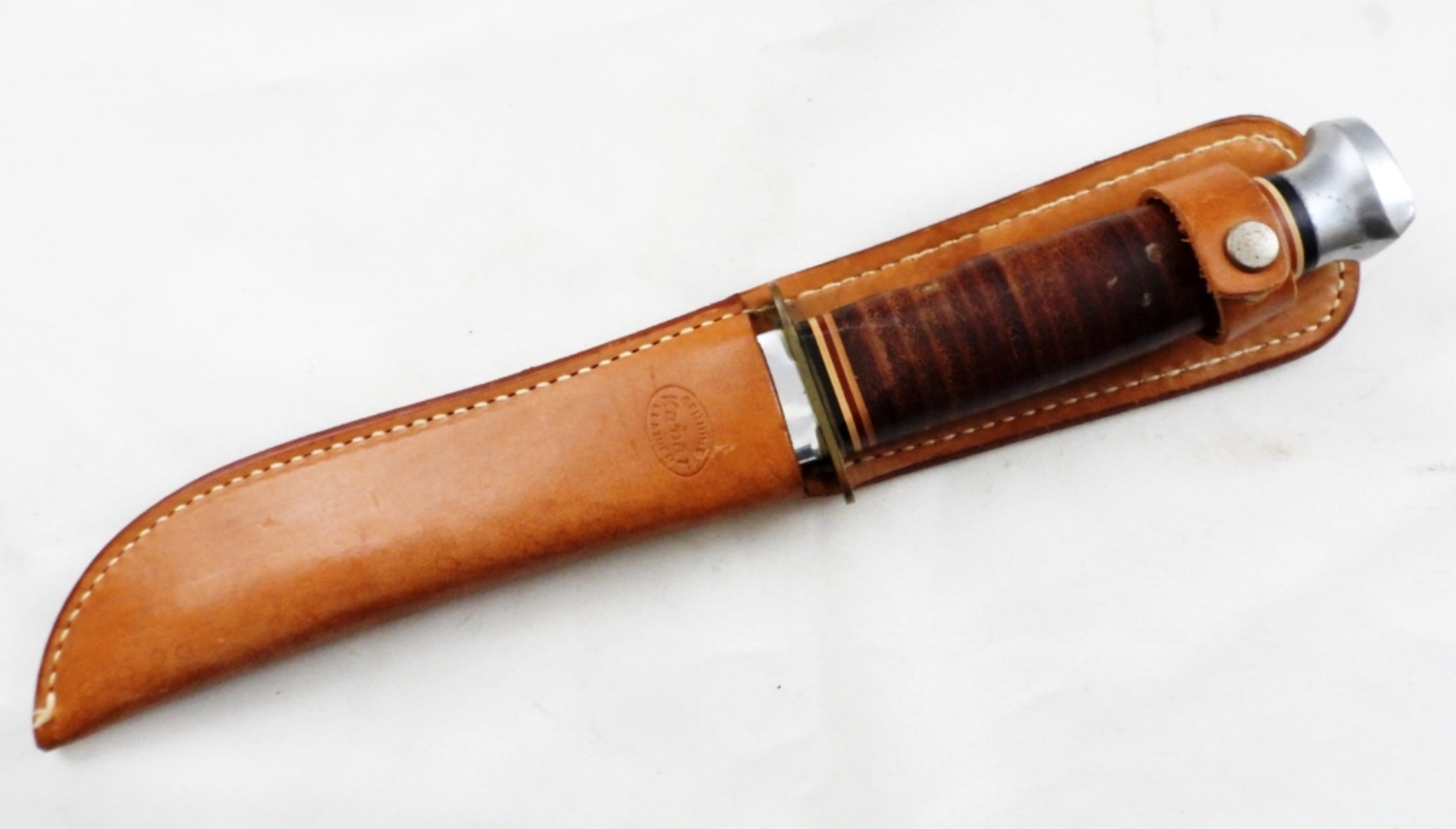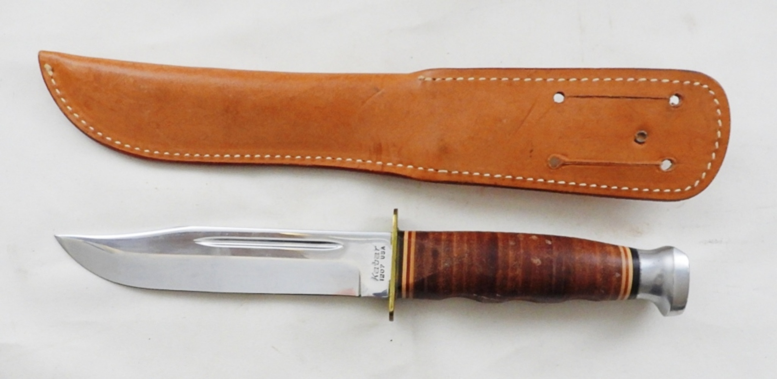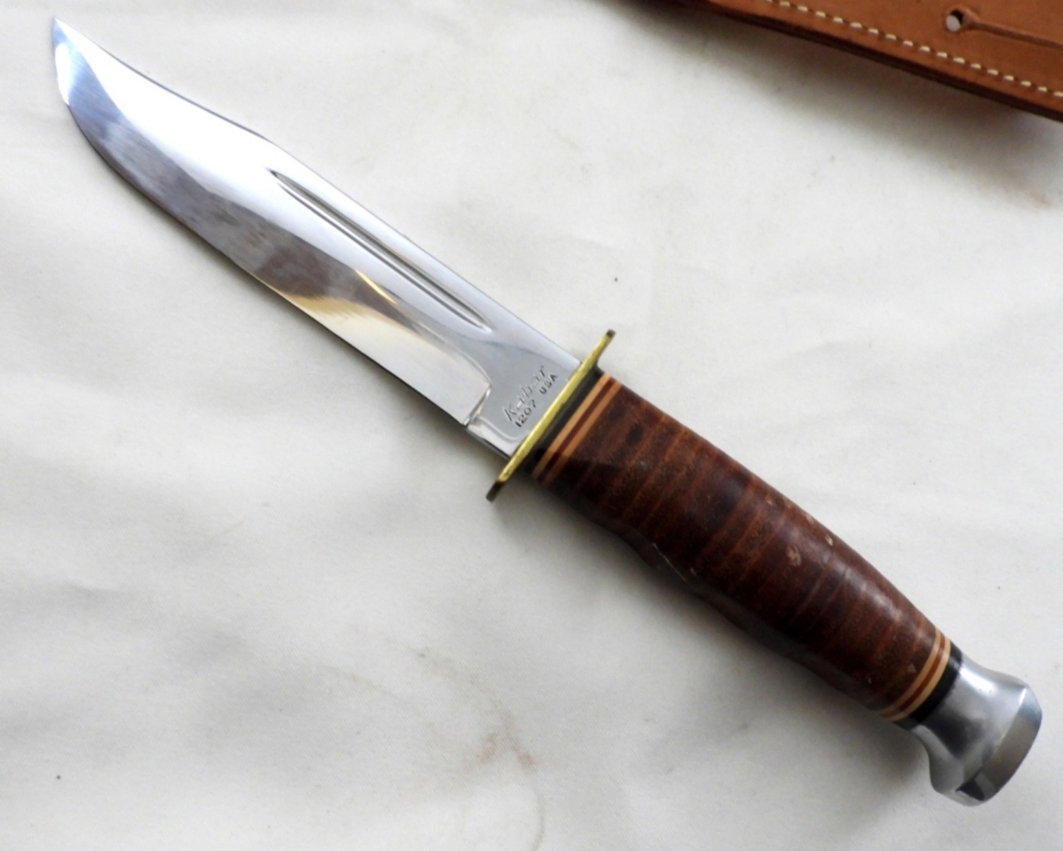 11″ LONG IN TOTAL, BLADE IS 6″ LONG, STAMPED KA-BAR 1207 USA WITH GENUINE LEATHER SHEATH