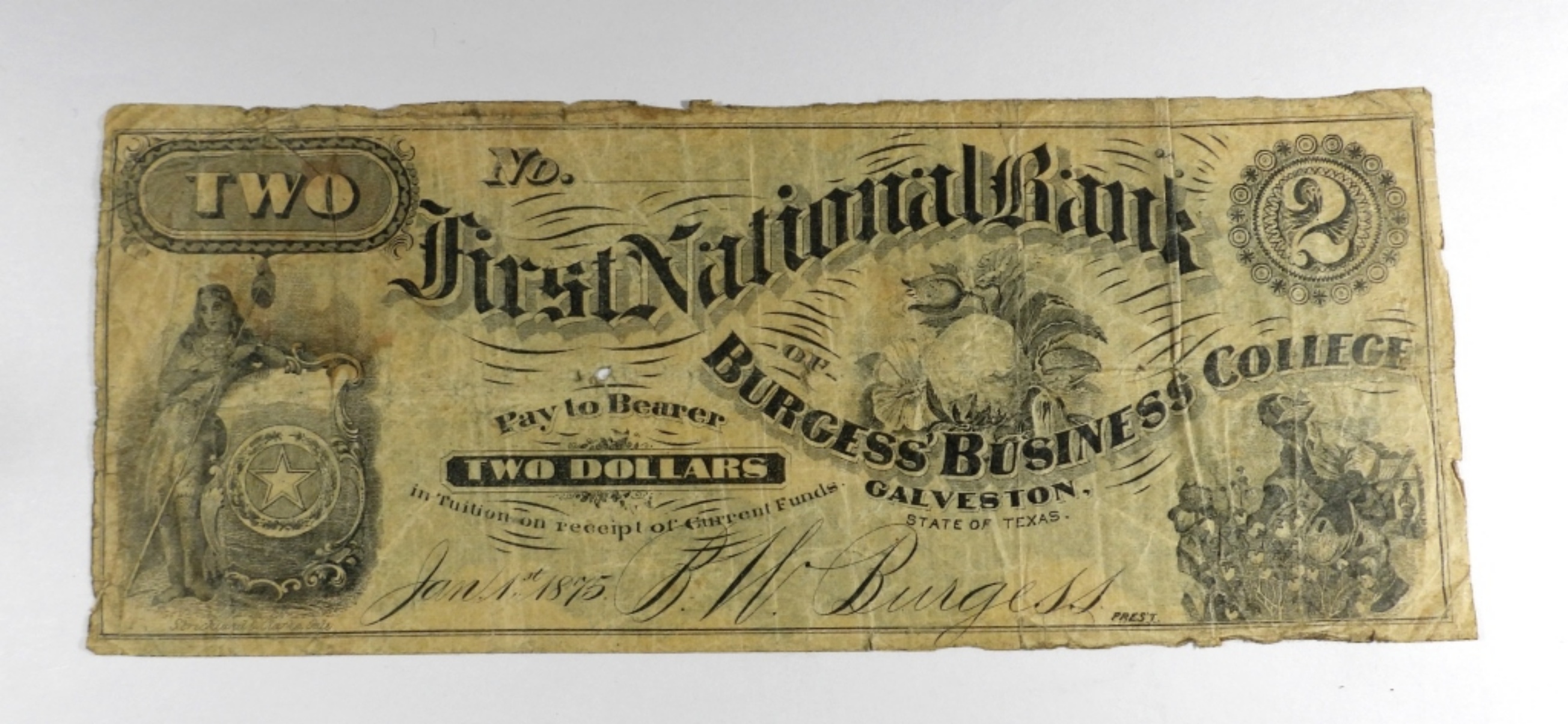 FIRST NATIONAL BANKD of BURGESS BUSINESS COLLEGE GALVESTON, STATE of TEXAS