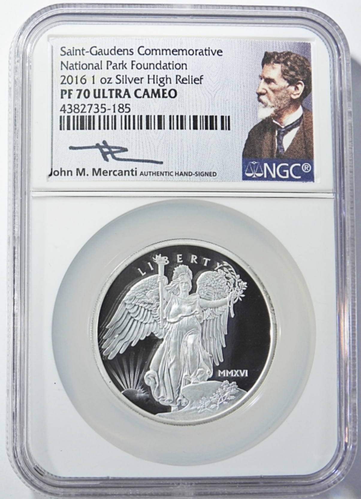 1oz SILVER HIGH RELIEF, NATIONAL PARK FOUNDATION. JOHN MERCANTI SIGNED