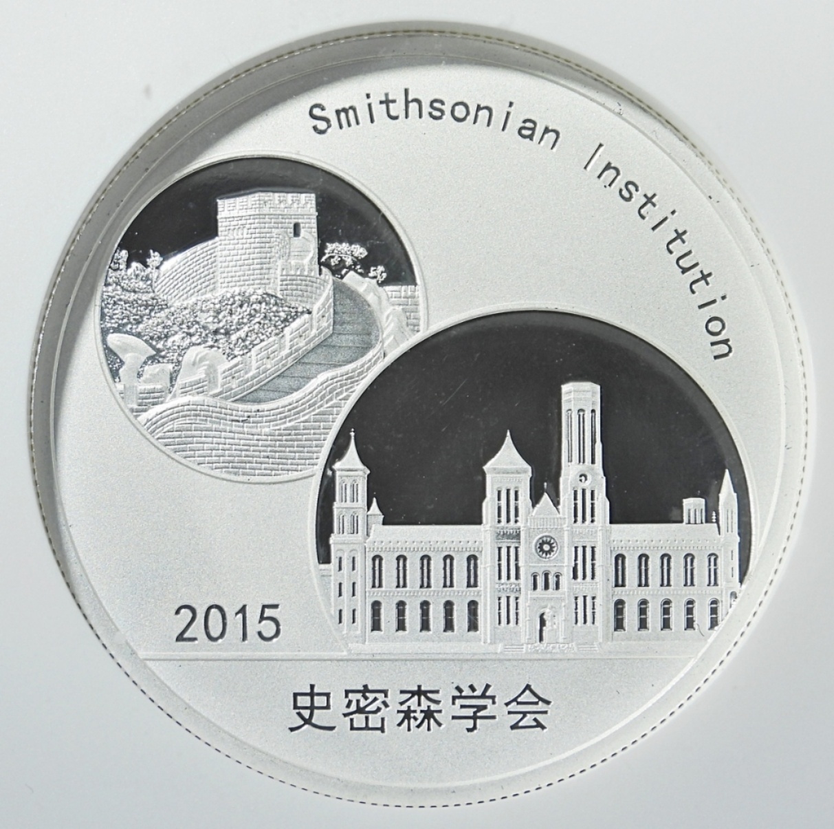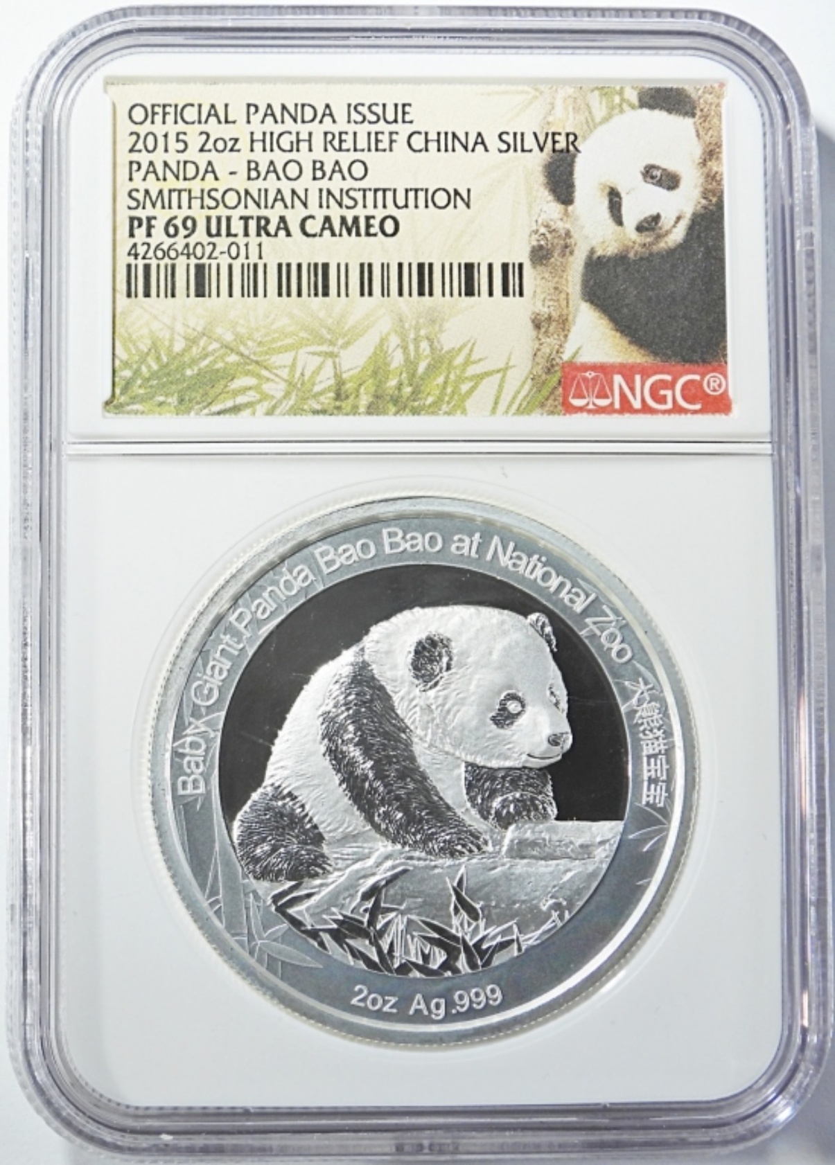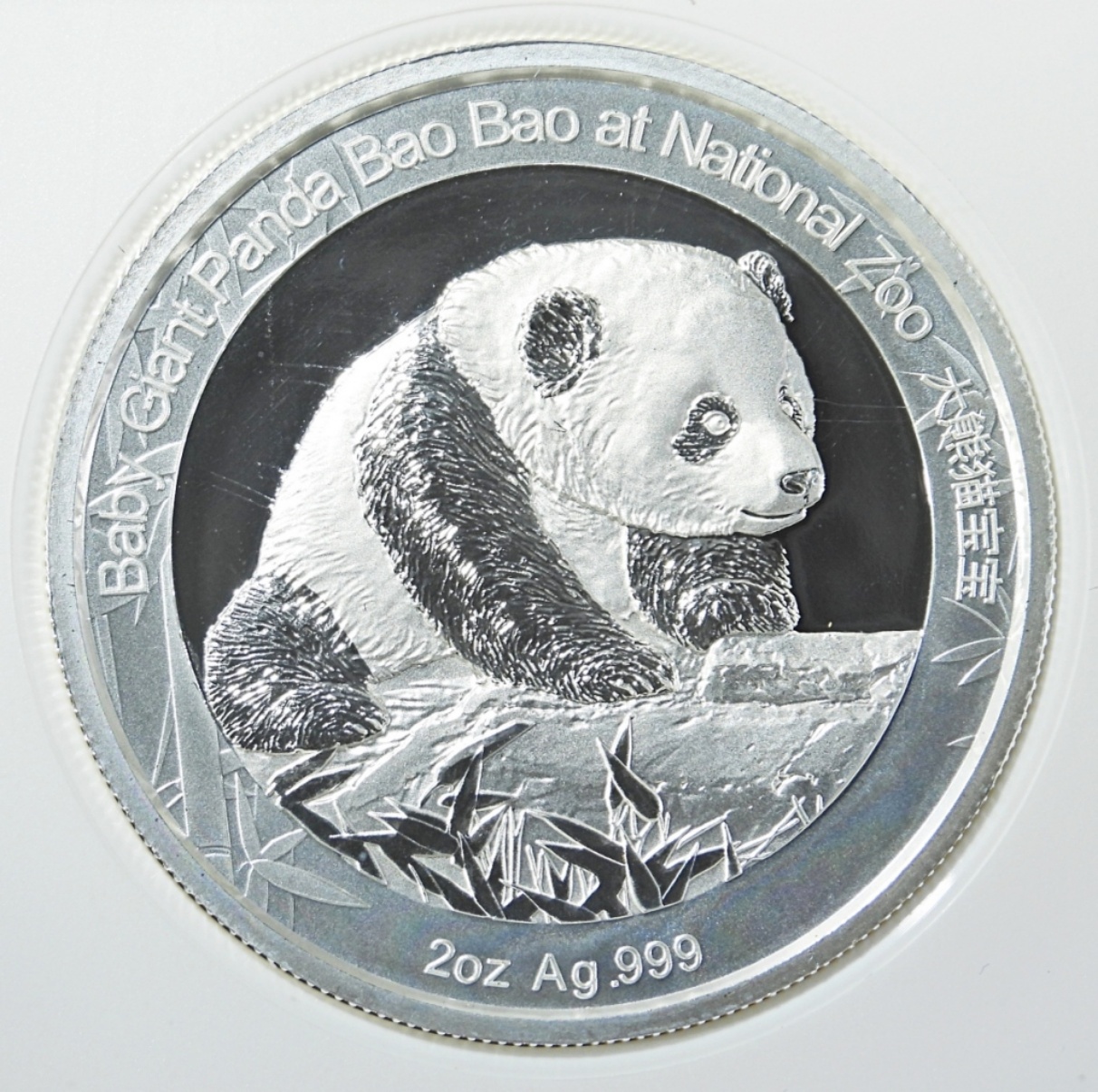SMITHSONIAN INSTITUTION HIGH RELIEF OFFICIAL PANDA ISSUE, BAO BAO. 2oz .999 SILVER