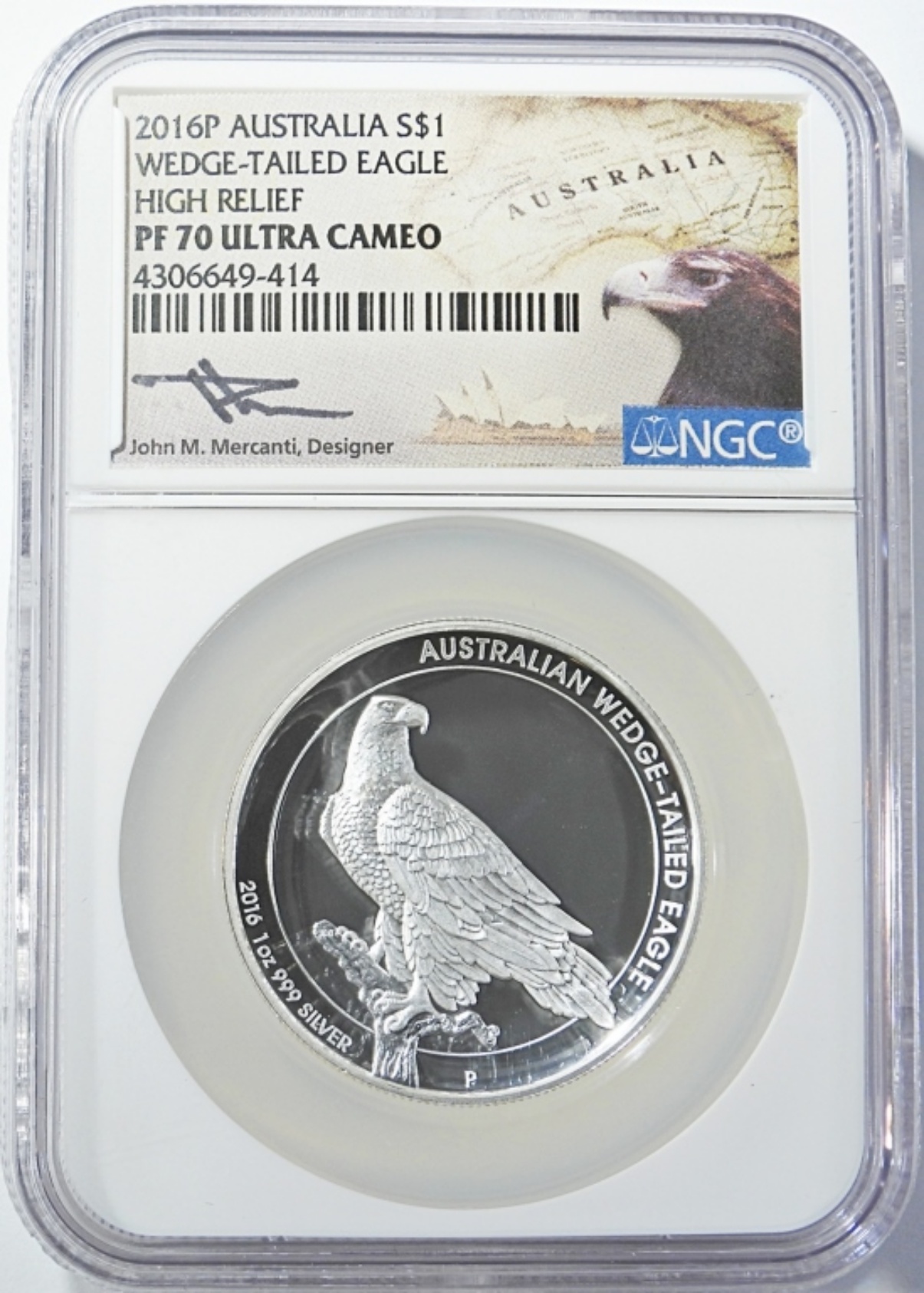 HIGH RELIEF 1oz .999 SILVER AUSTRALIA $1 JOHN MERCANTI SIGNED.