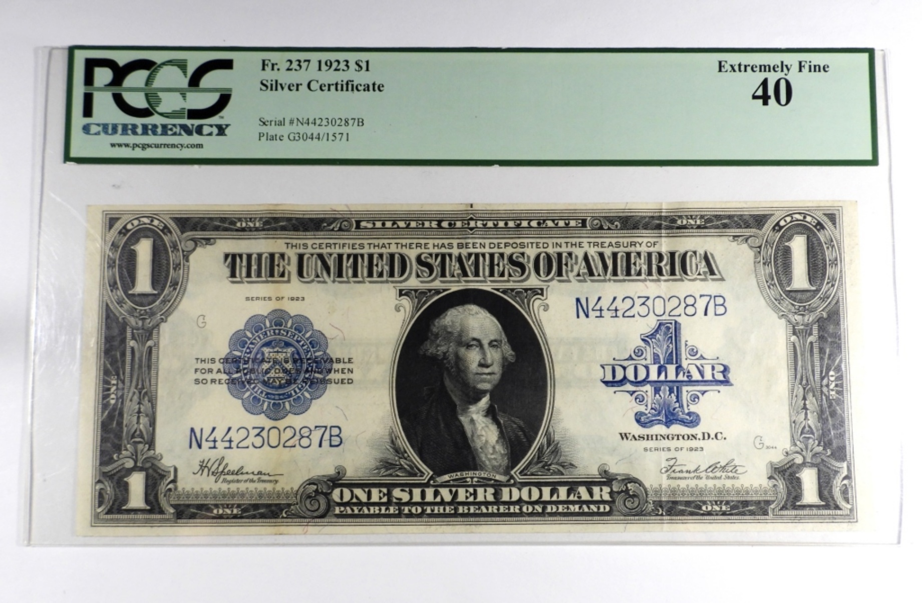ONE DOLLAR, WASHINGTON, SERIAL #N44230287B, PLATEG3044/1571, 40 EXTREMELY FINE