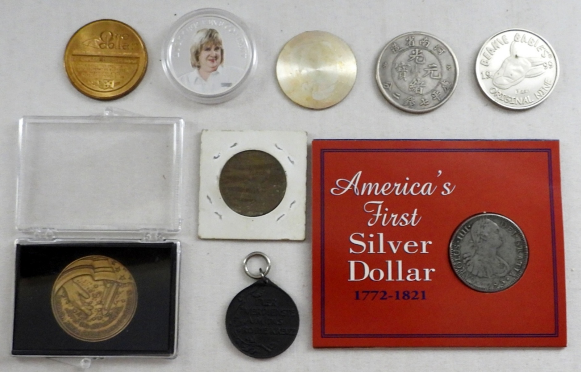 ODD MIX – 1921 REPLICA MORGAN CUT in HALF, CHINA COPY COIN & MORE