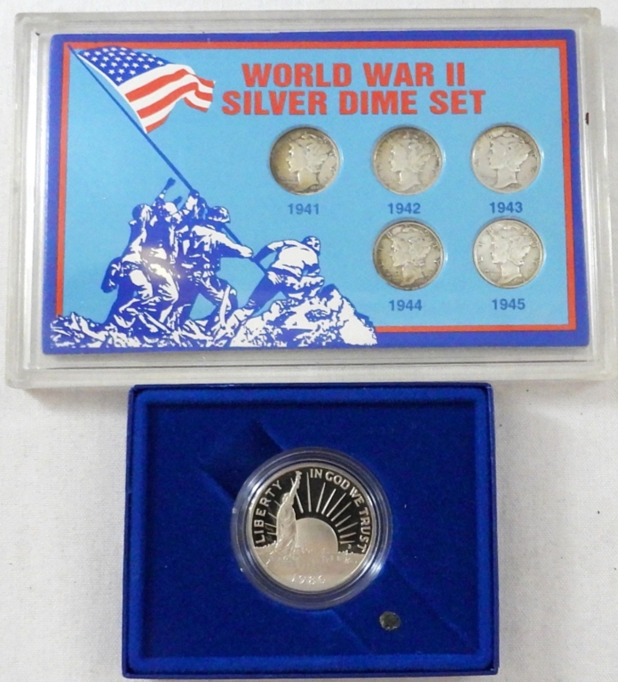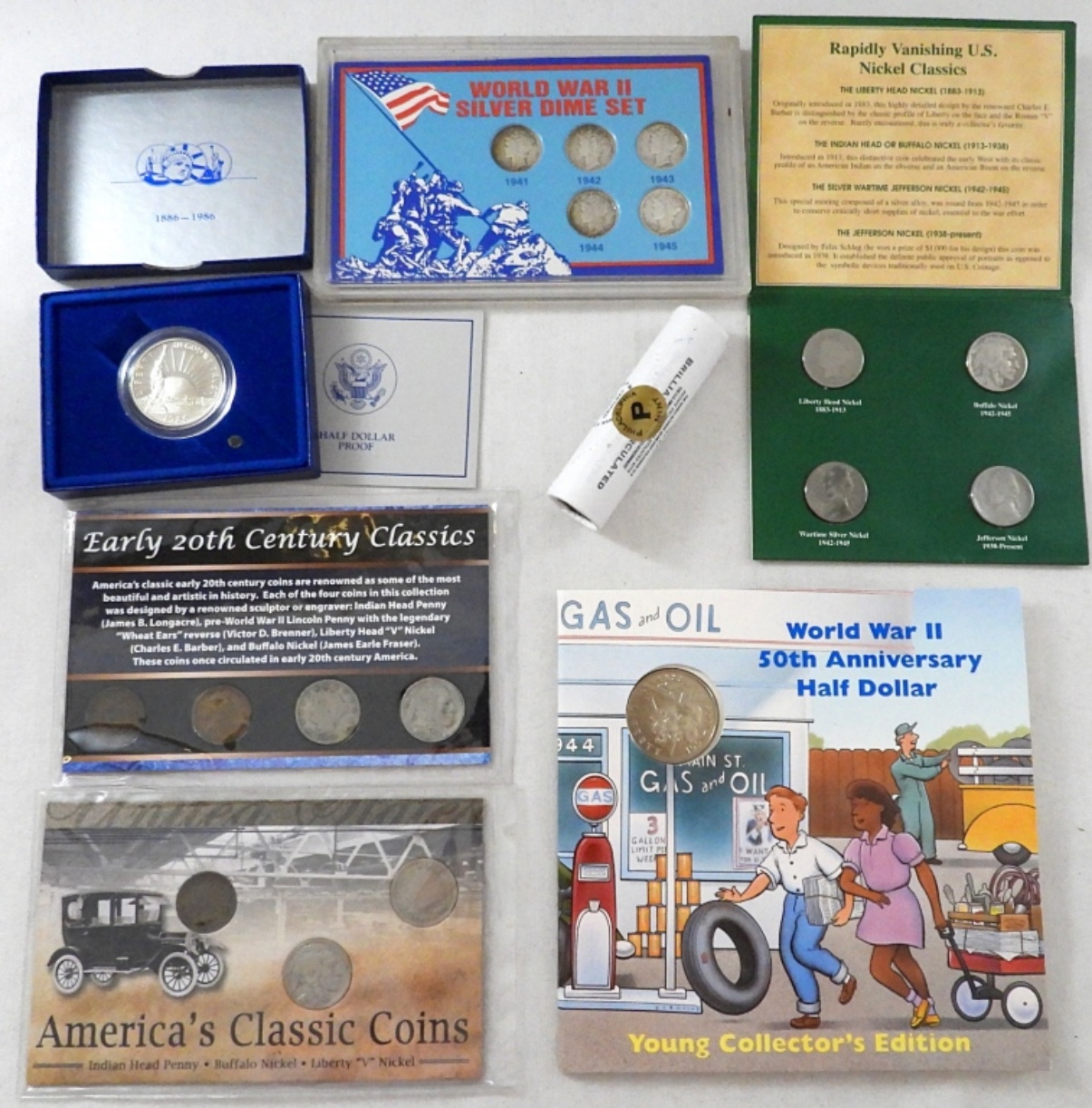 STATUE of LIBERTY 50c COMMEM, 2005-P NICKLE ROLL, WWII SILVER DIME SET, 20th CENTURY CLASSICS & MORE