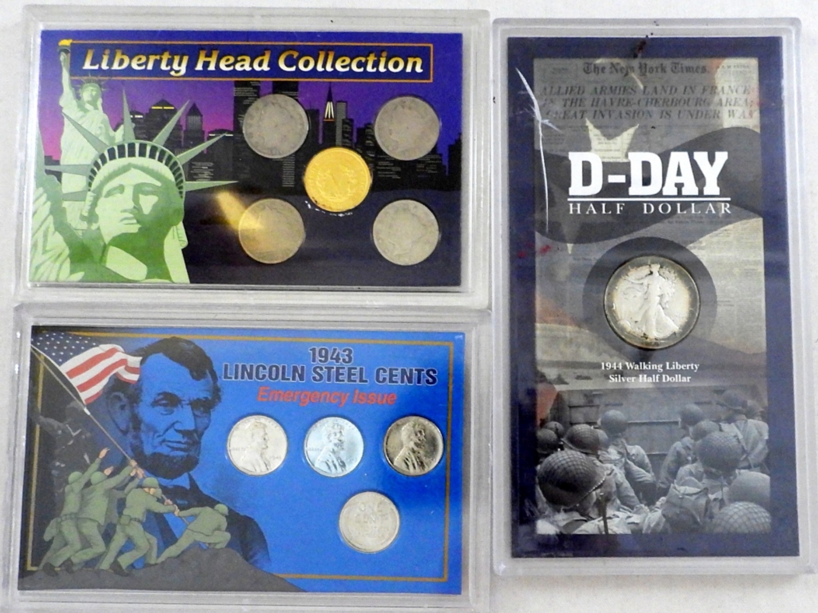 AMERICA THE BEAUTIFUL QTR SET, WWI PENNY COLLECTION, 1943 STEEL CENT COLLECTION, LIBERTY HEAD COLLECTION,