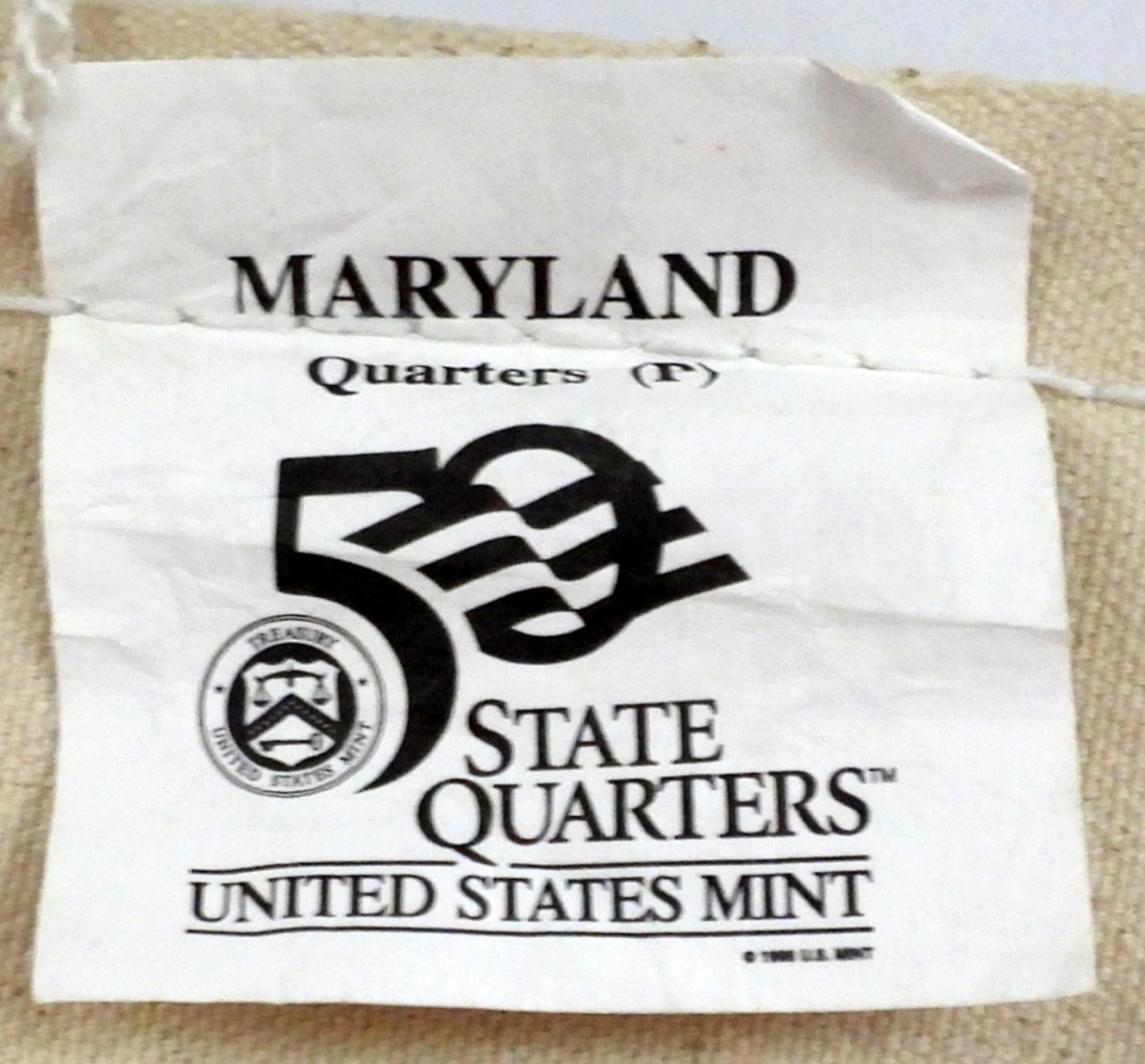 (100) 200-P MARYLAND STATE QUARTERS. $25.00 FACE VALUE. SEWN IN MINT BURLAP BAG
