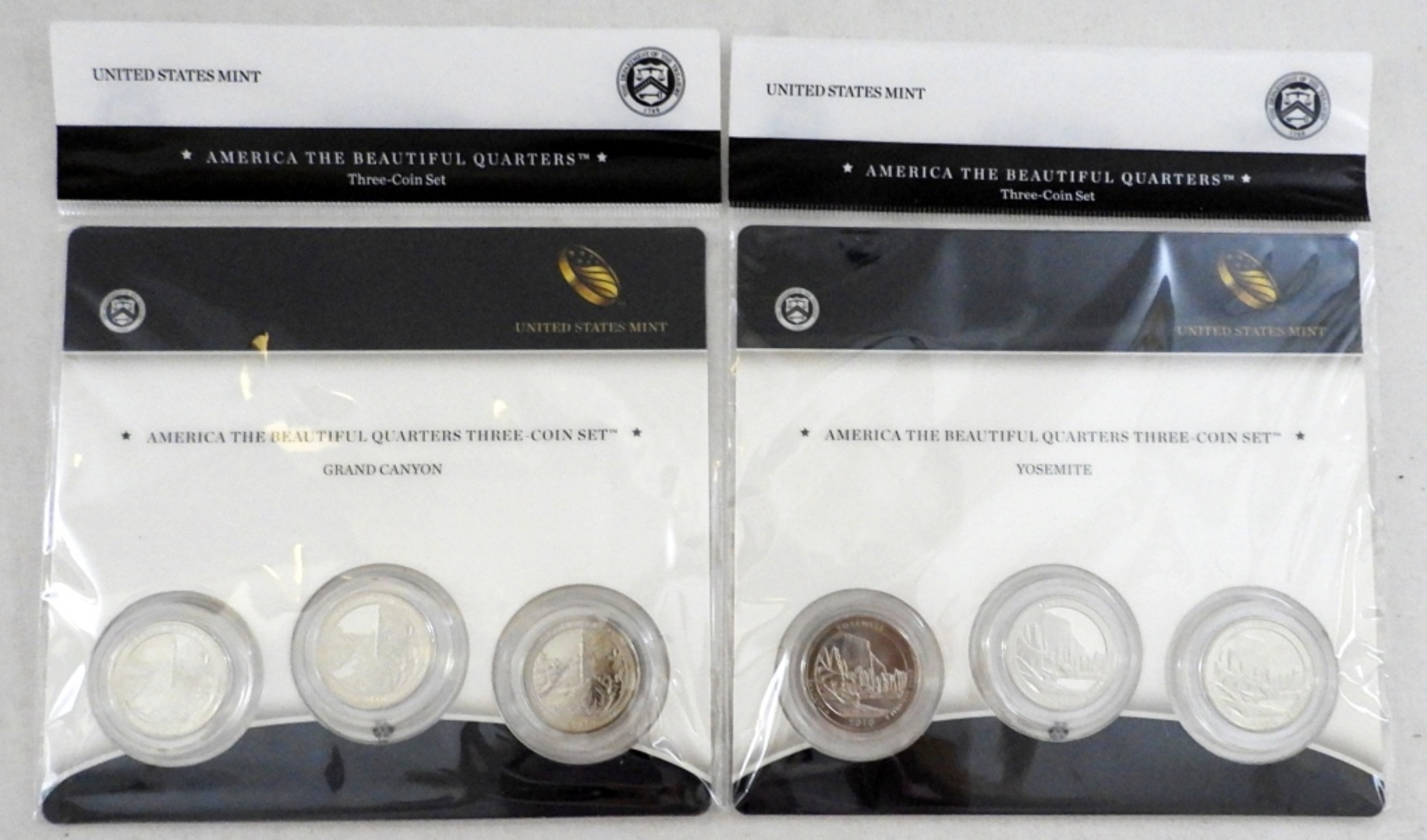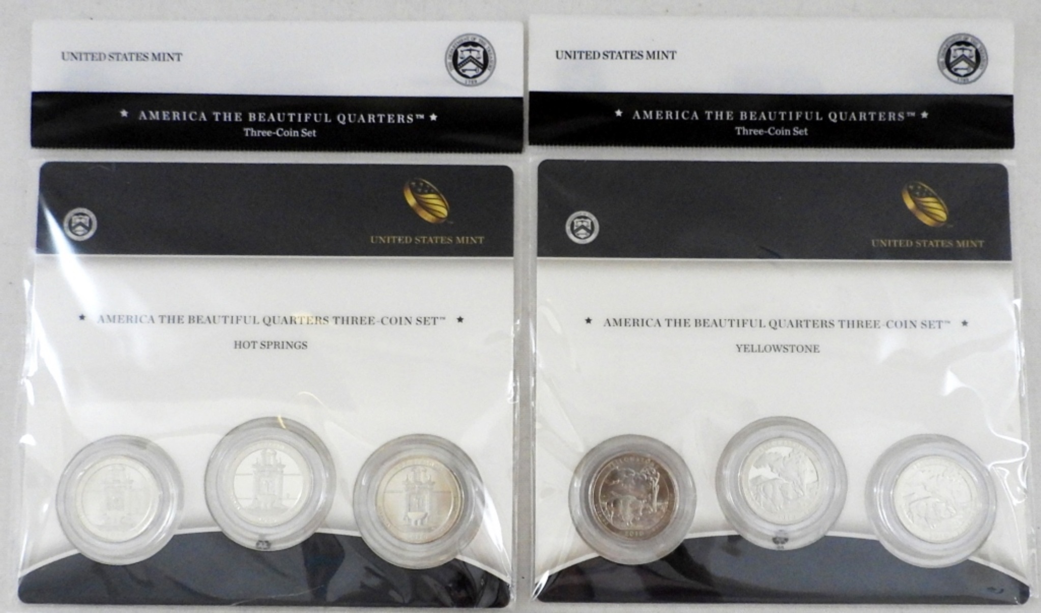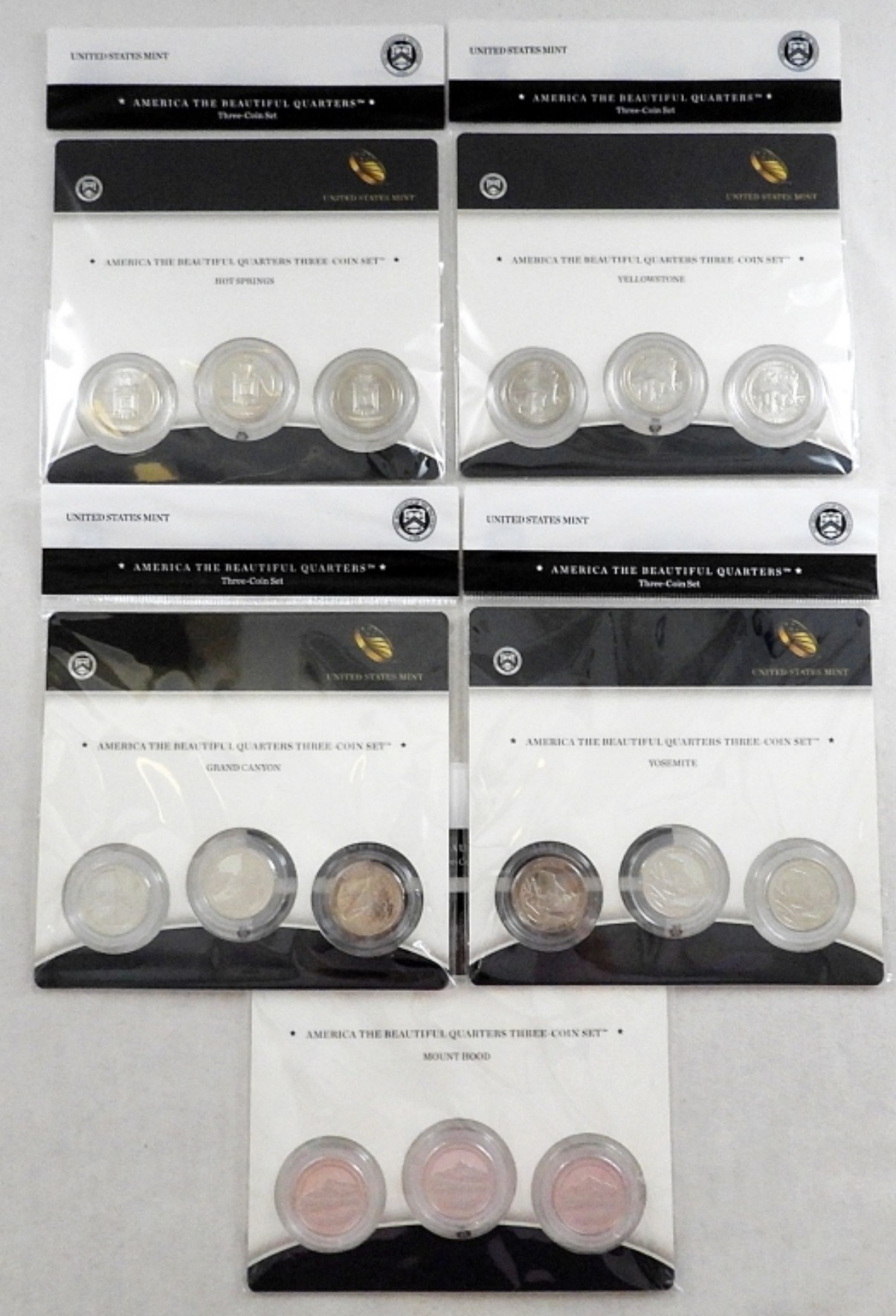 HOT SPRINGS, YELLOWSTONE, YOSEMITE, GRAND CANYON, & MOUNT HOOD. AMERICA THE BEAUTIFUL QUARTERS SEALED IN MINT PACKAGING W/ COA