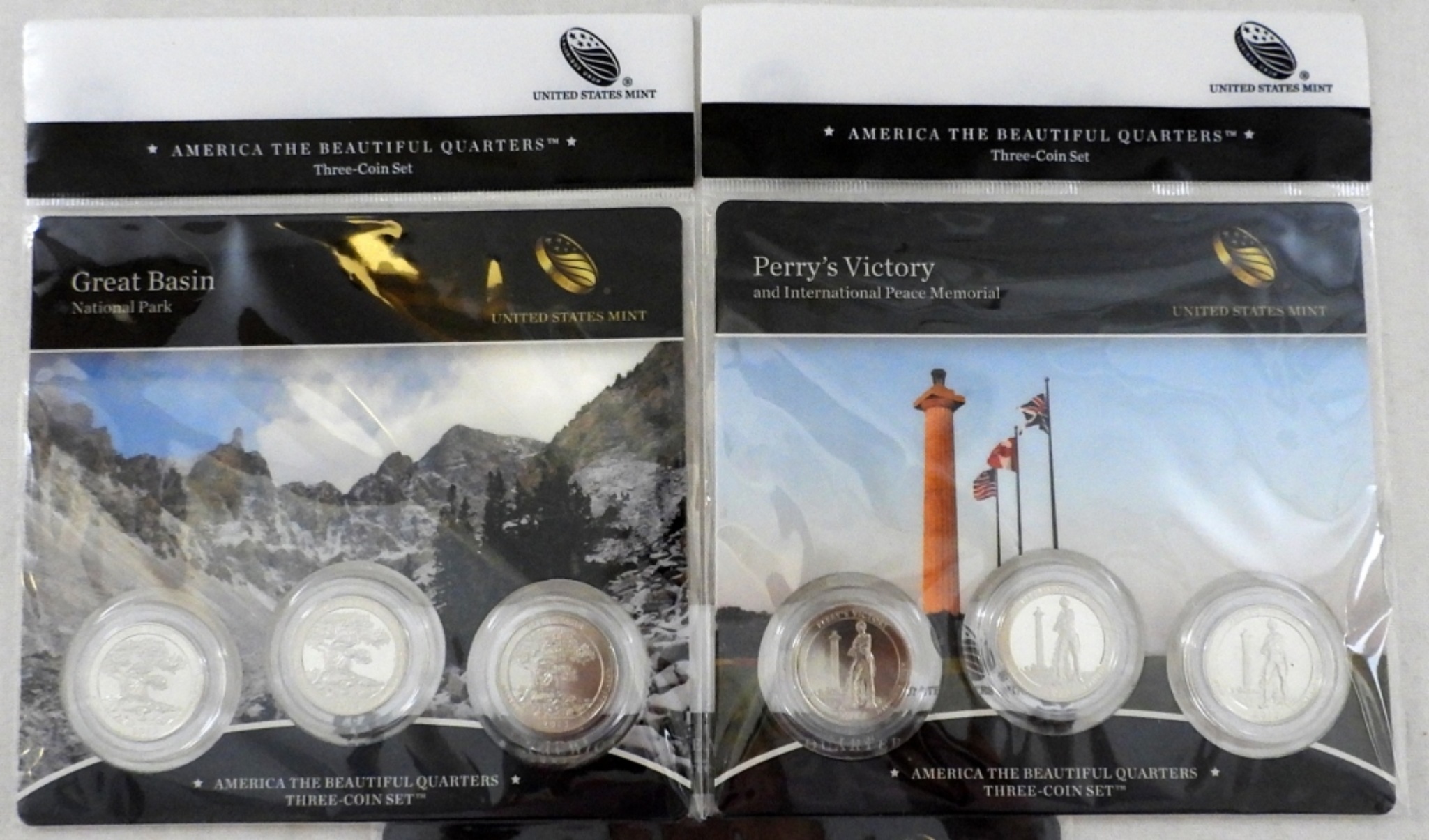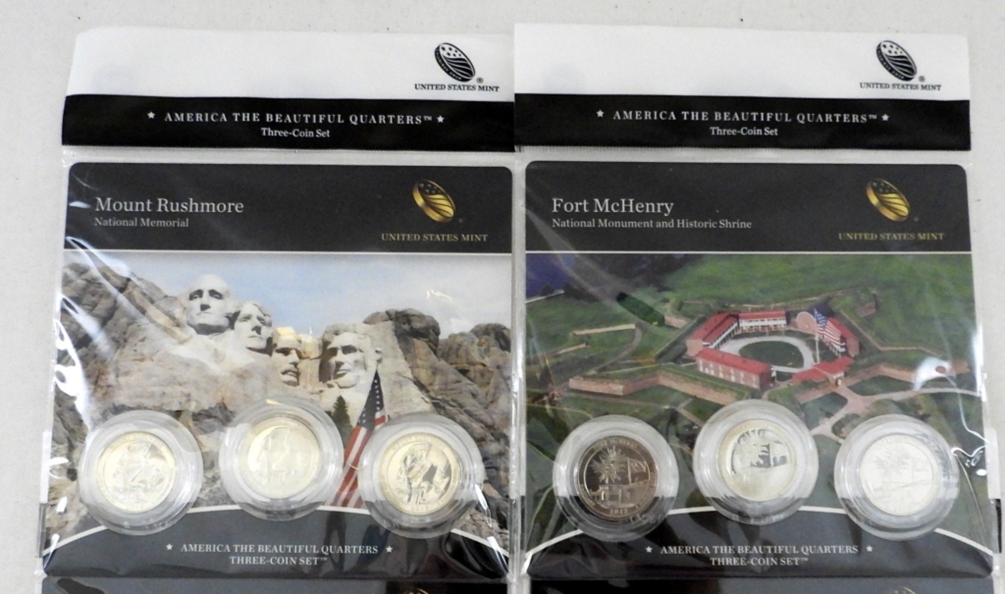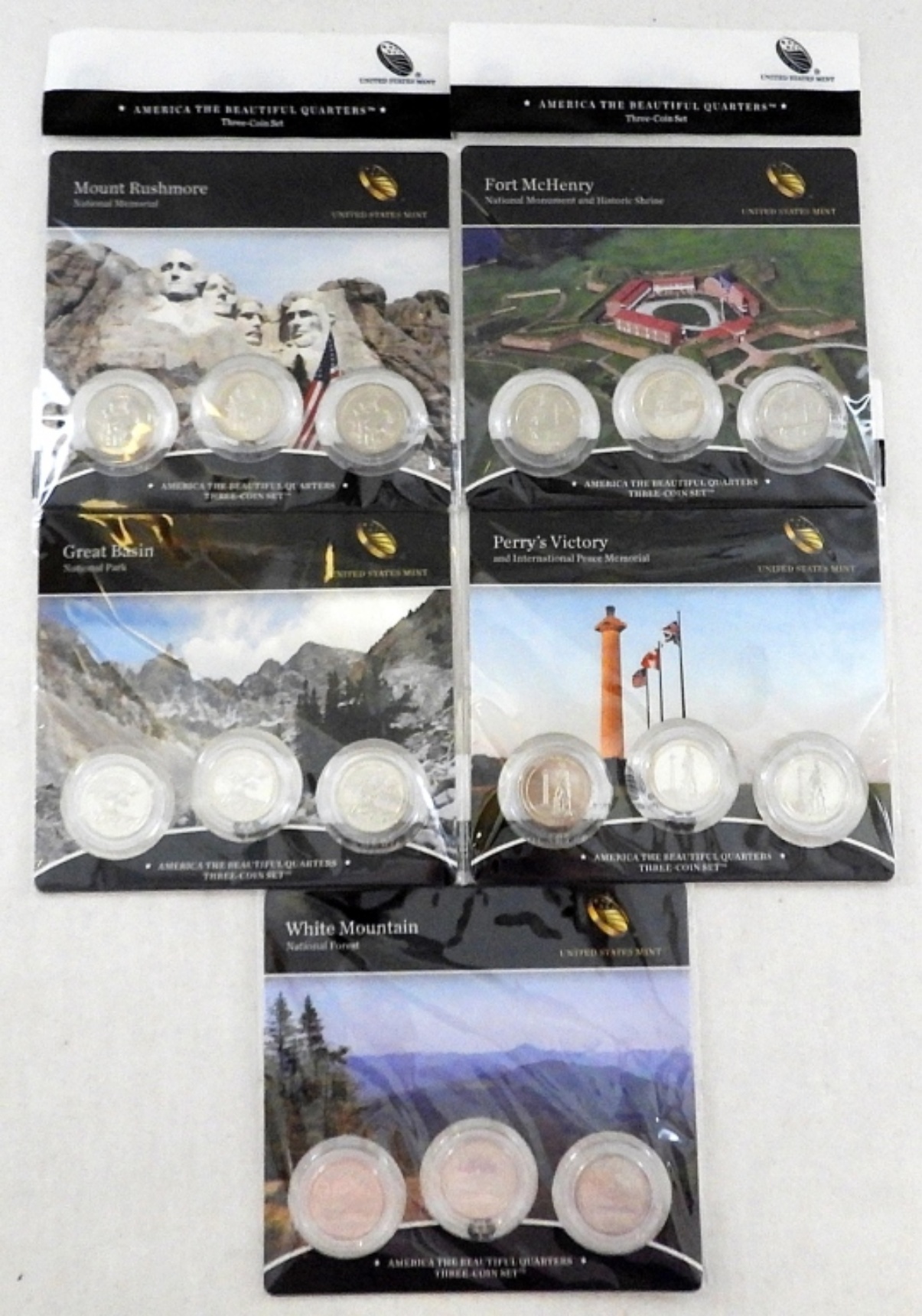 WHITE MOUNTAIN, PERRY’S VICTORY, GREAT BASIN, FORT McHENRY, & MOUNT RUSHMORE. AMERICA THE BEAUTIFUL QUARTERS SEALED IN MINT PACKAGING W/ COA