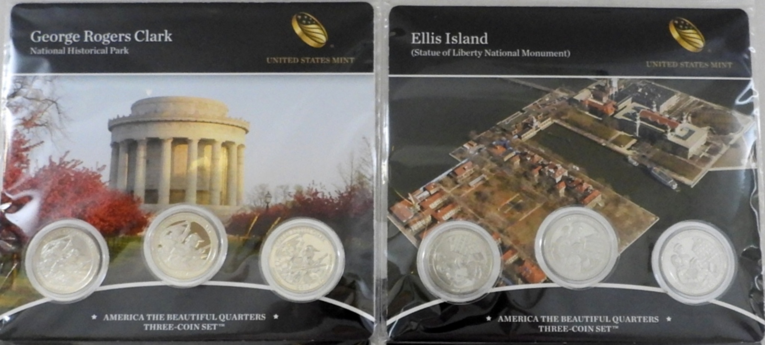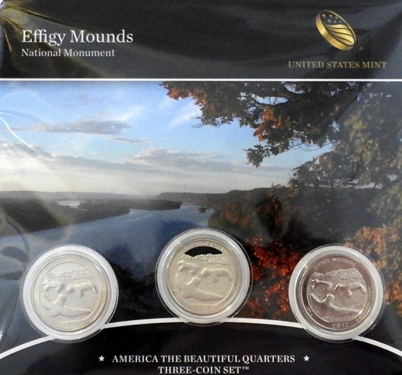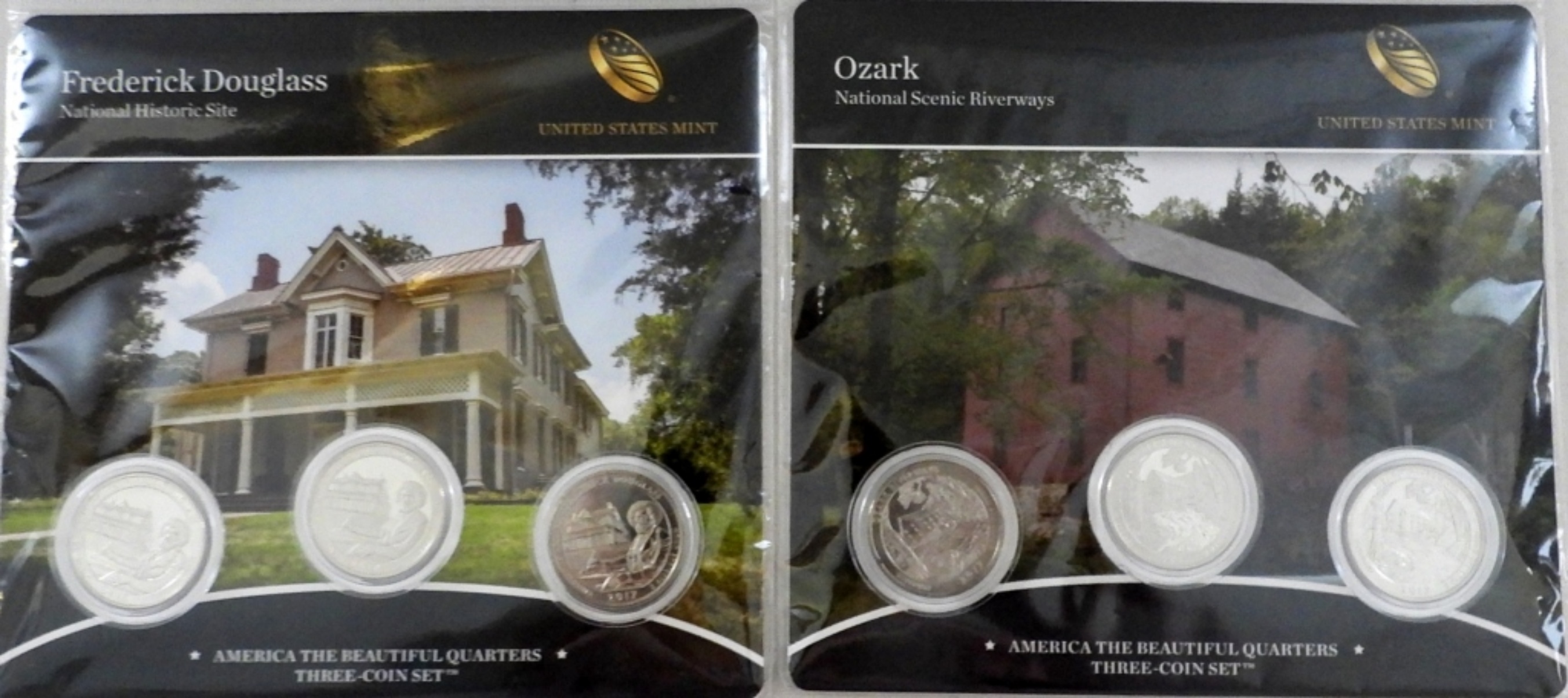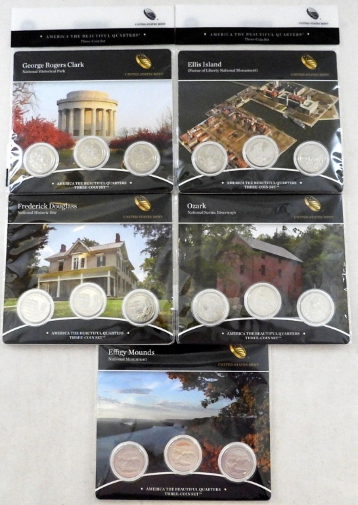 EFFIGY MOUNDS, FREDERICK DOUGLASS, OZARK, ELLIS ISLAND, & GEORGE ROGERS CLARK. AMERICA THE BEAUTIFUL QUARTERS SEALED IN MINT PACKAGING W/ COA