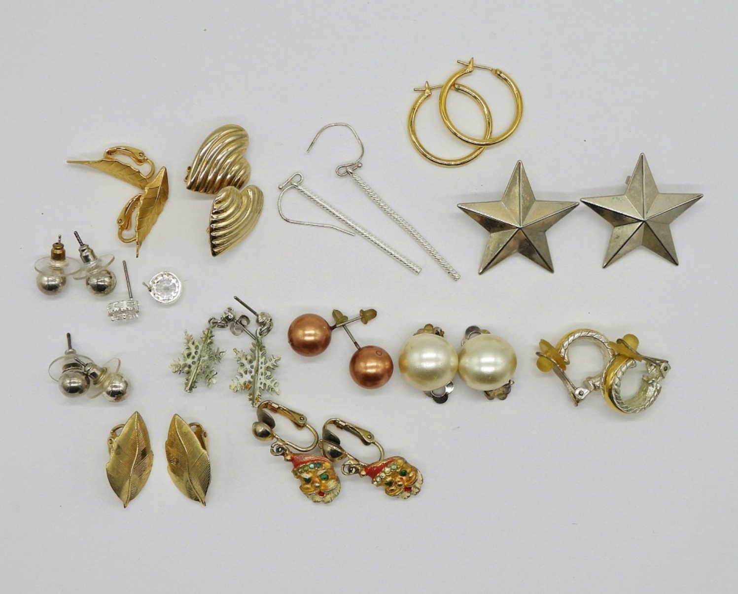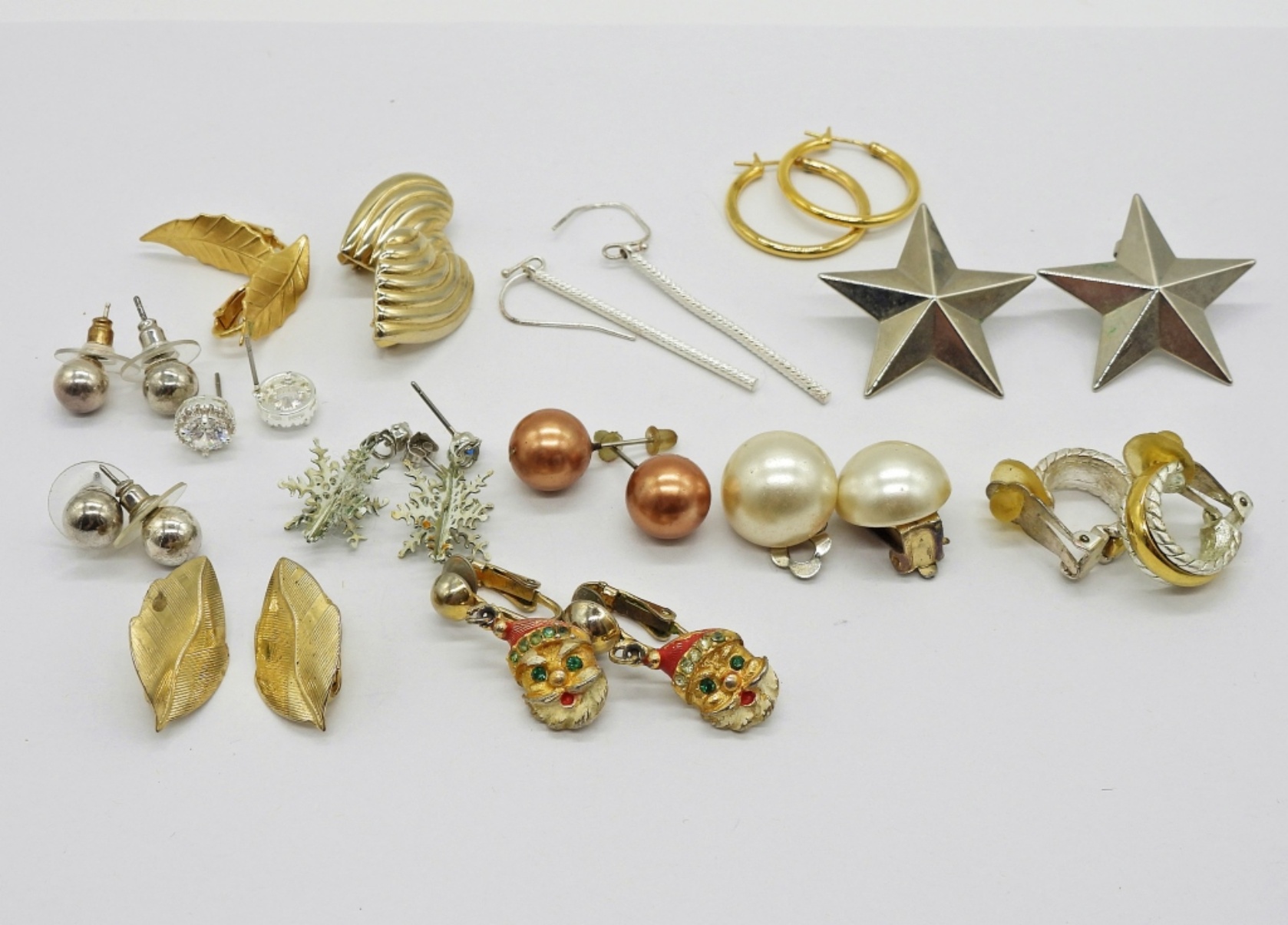 Fourteen Pair of Vintage Gold and Silver Tone Earrings. Pierced and Clip Ons.